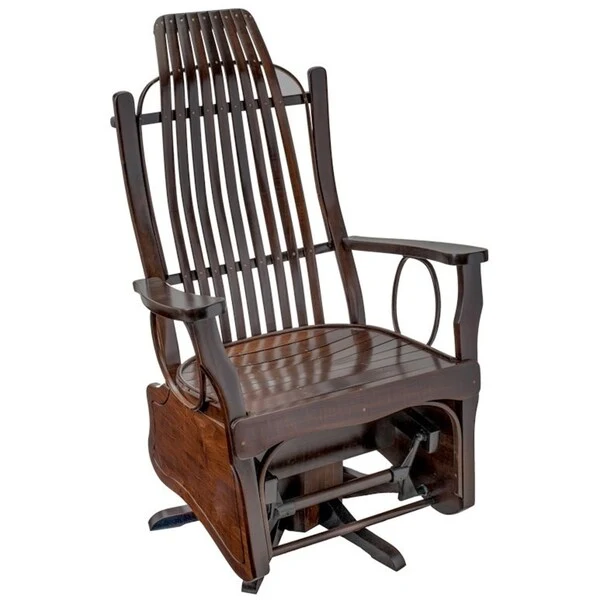 Brown Maple Flat Arm Swivel Glider Chair with Rich Tobacco Stain