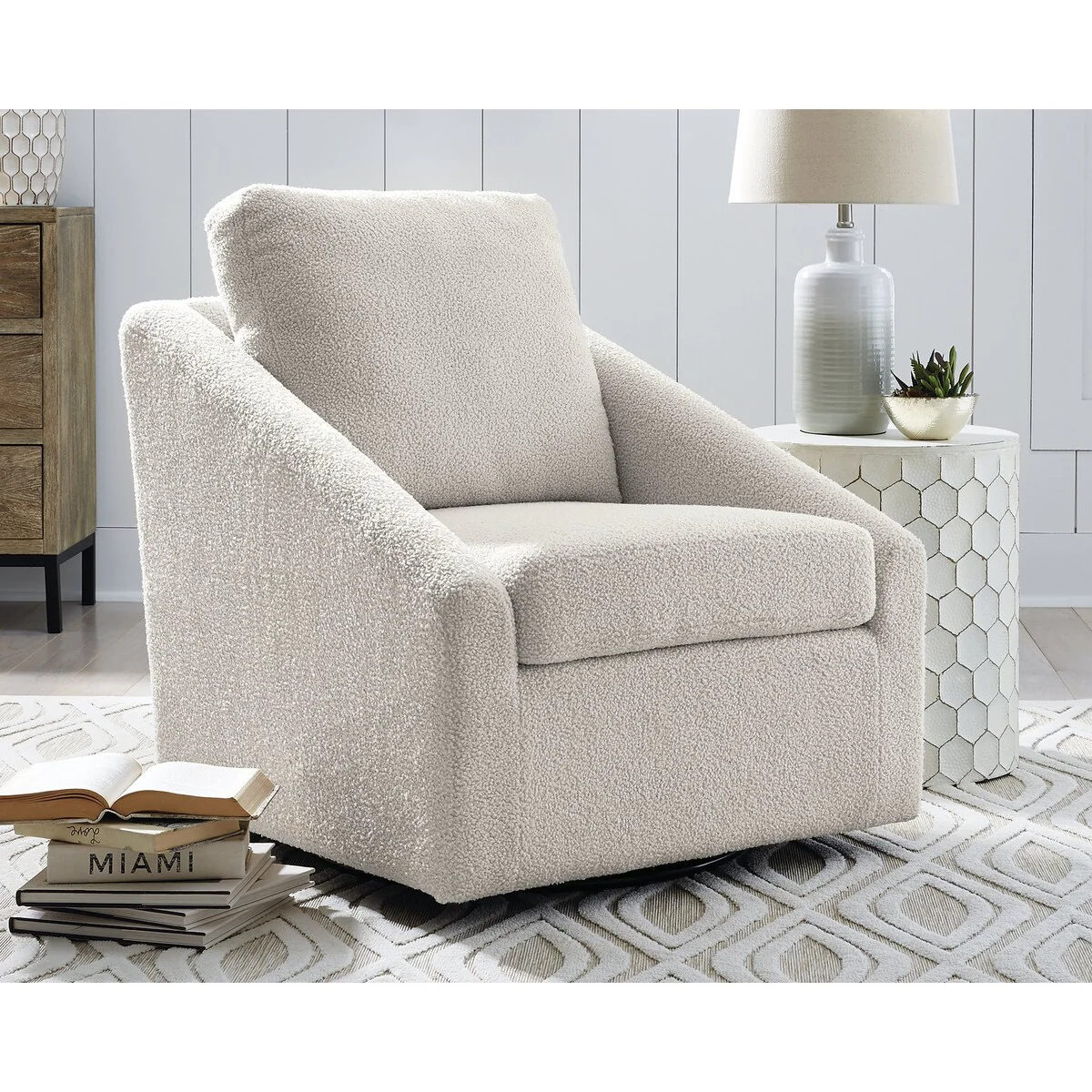 Wysler Contemporary Cream Swivel Accent Chair - 31W x 34D x 35H