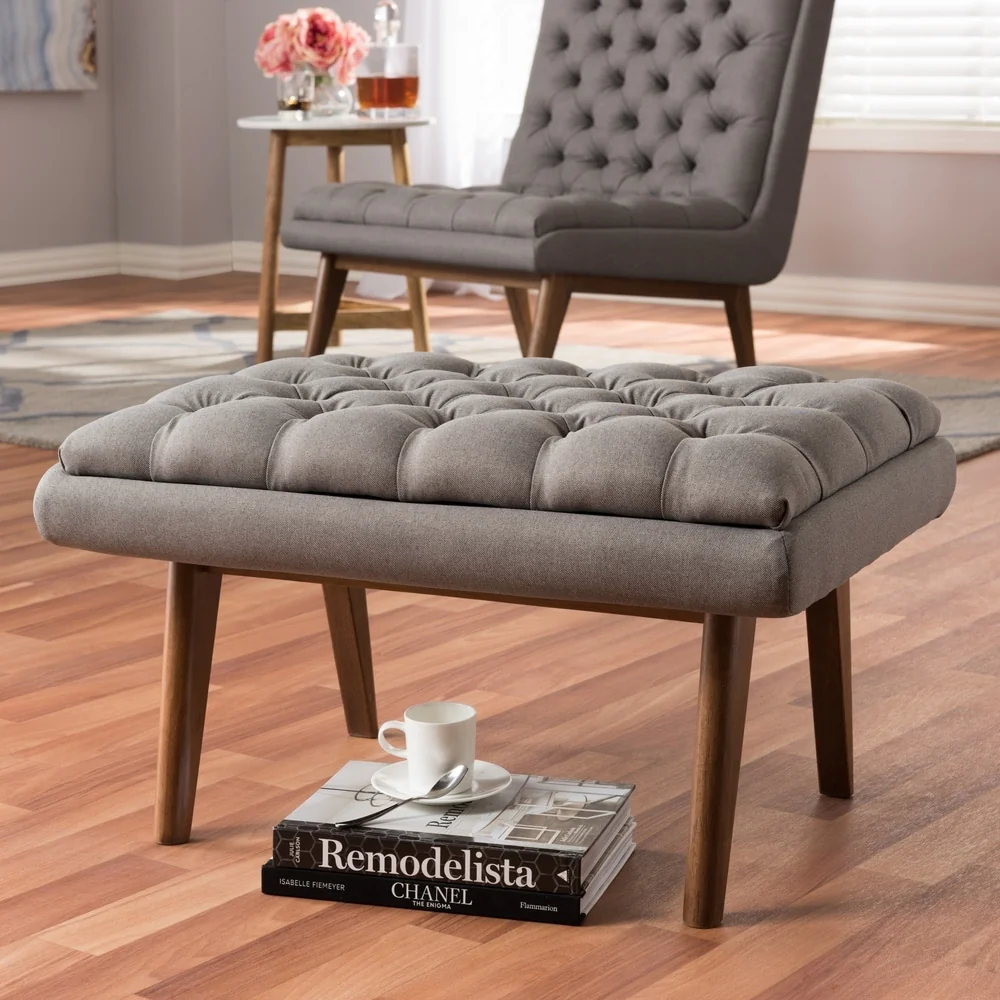 Mid-Century Upholstered Ottoman by Baxton Studio