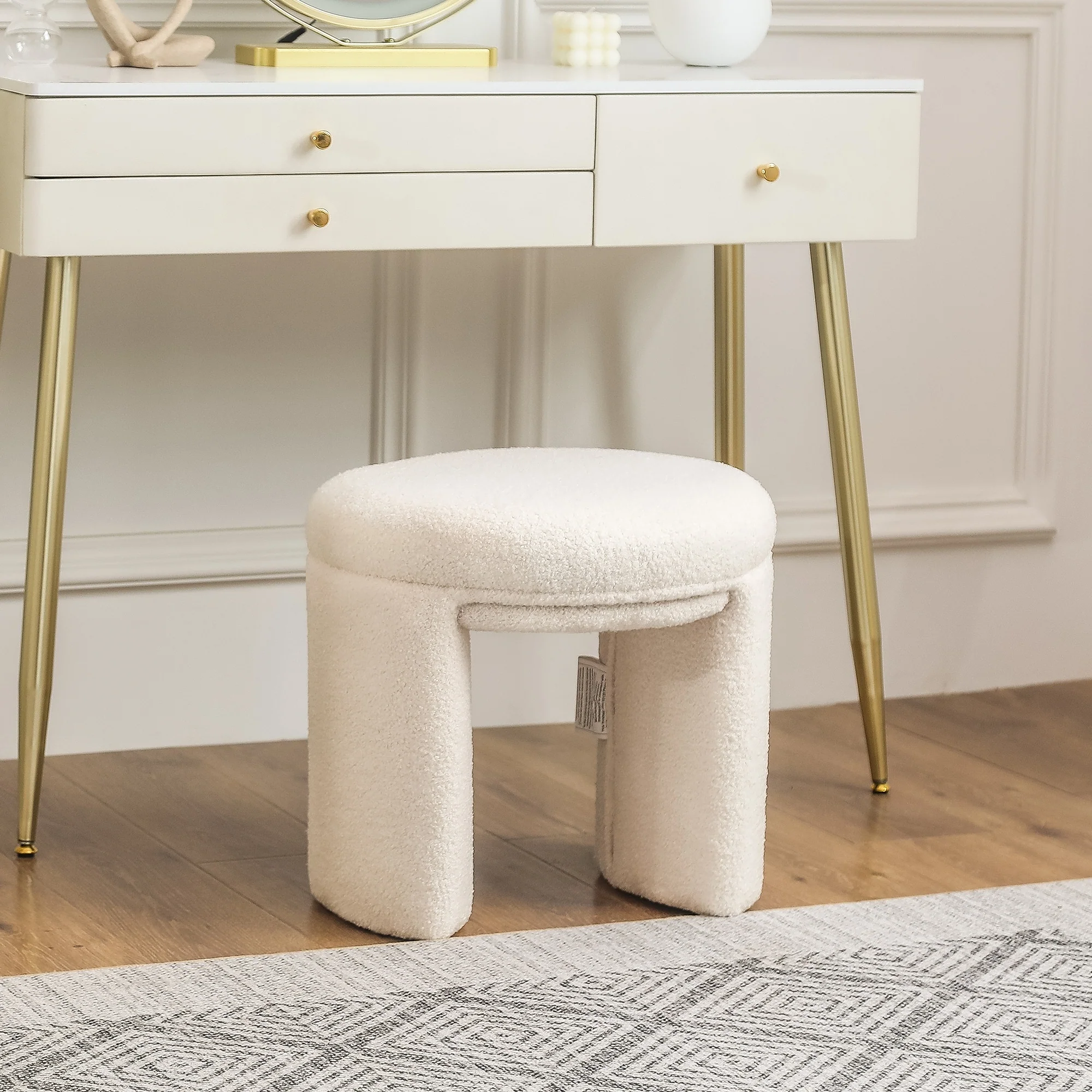 Adeco Ottoman Small Teddy Low Foot Stool Vanity Stool