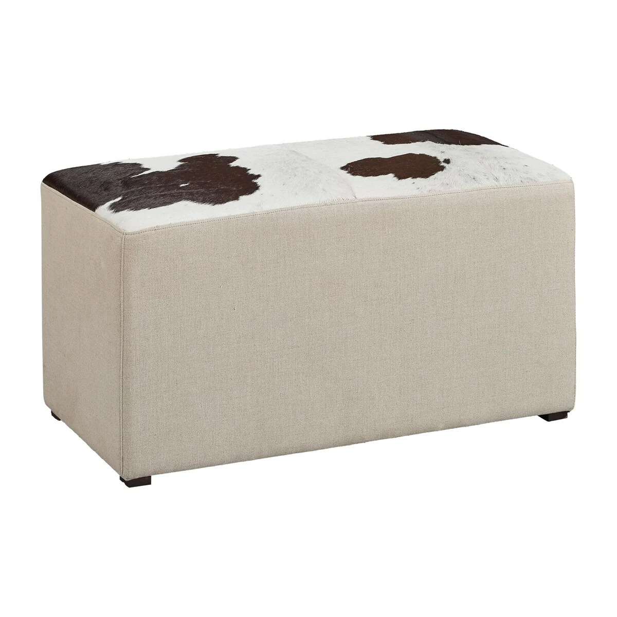 Round Rock Hair on Hide Leather & Linen Ottoman, 35-inch Width