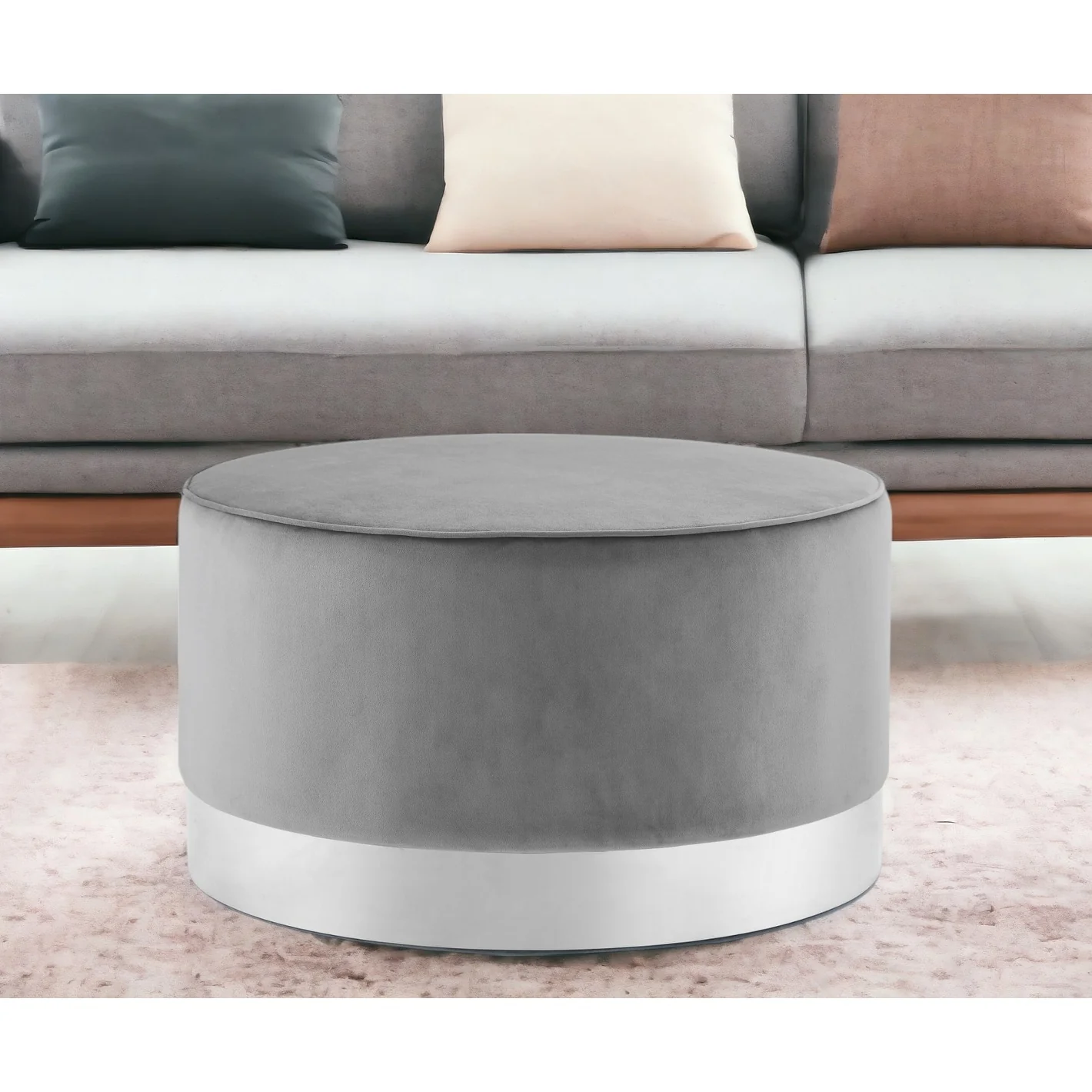31 Gray Velvet and Silver Round Cocktail Ottoman