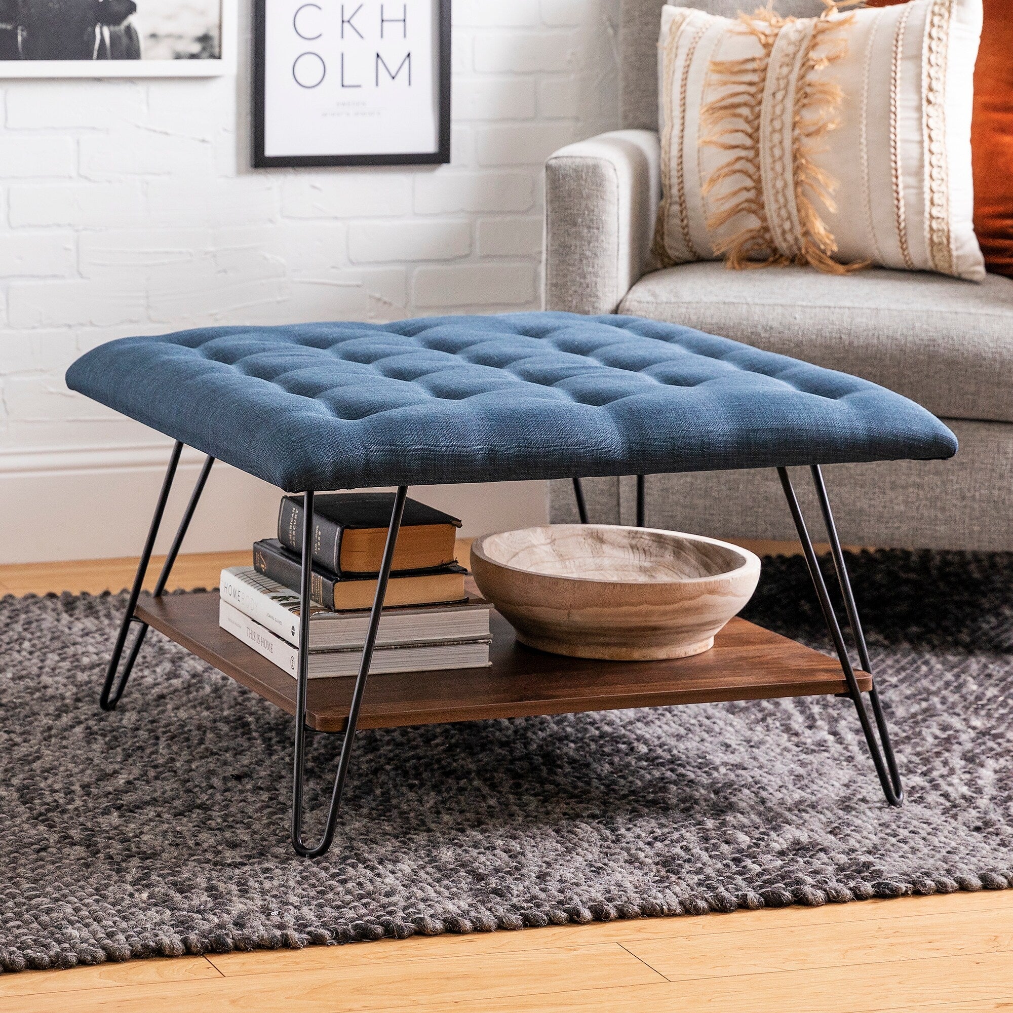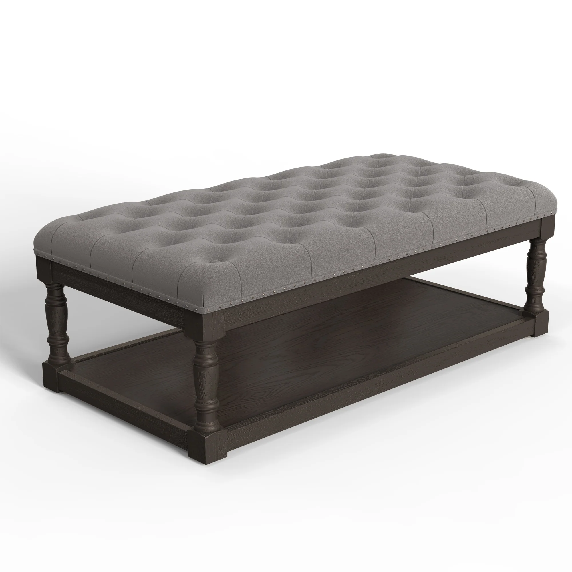 Brushed Gray Cocktail Shelved Ottoman 48-inch Tufted