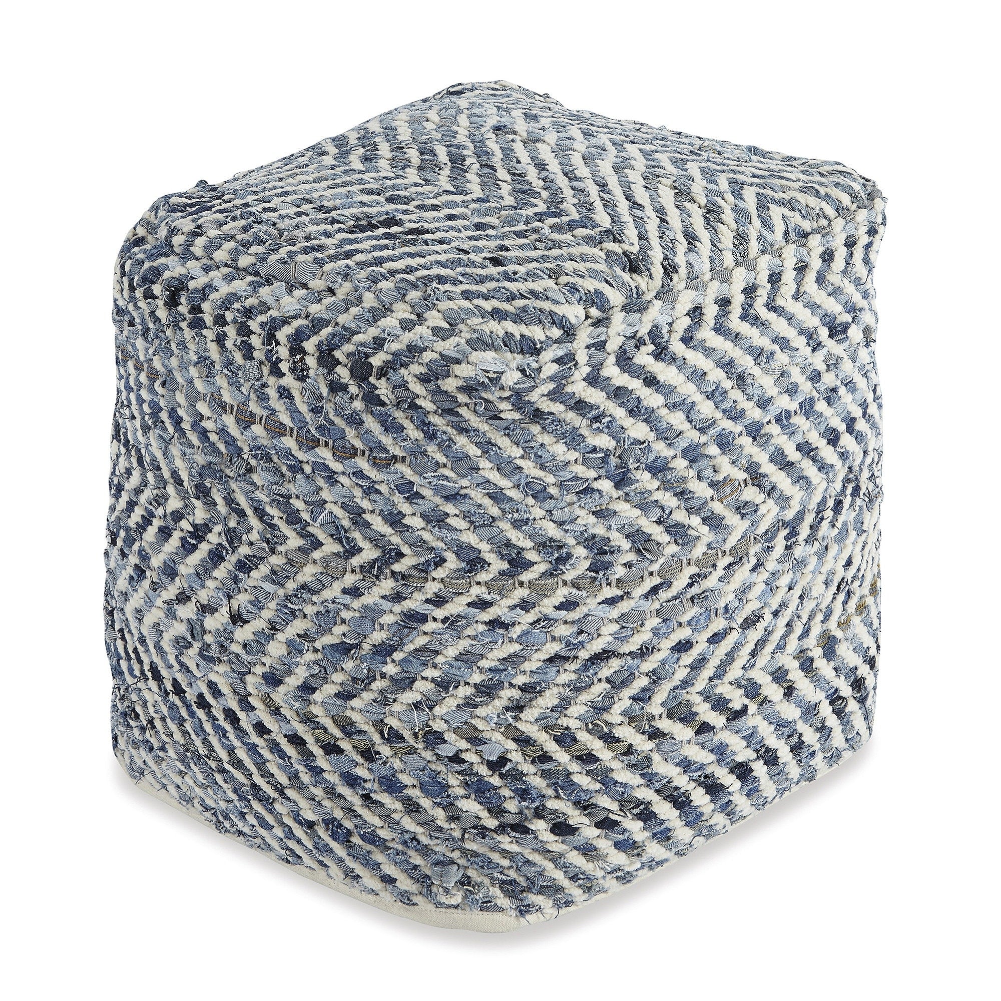 Signature Design by Ashley Chevron Blue Pouf