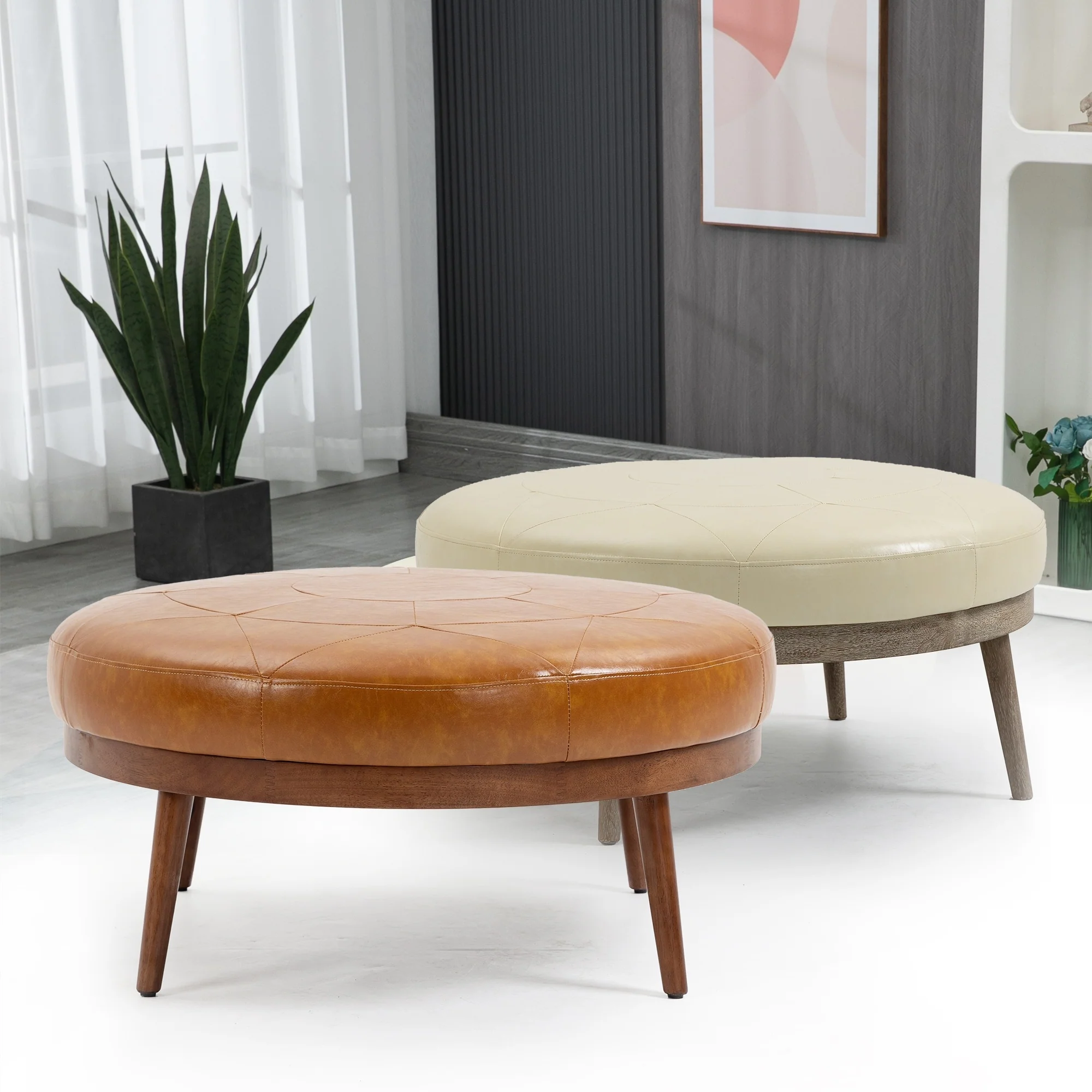 Krista 36-inch Round PU Leather Ottoman with Wood Framing