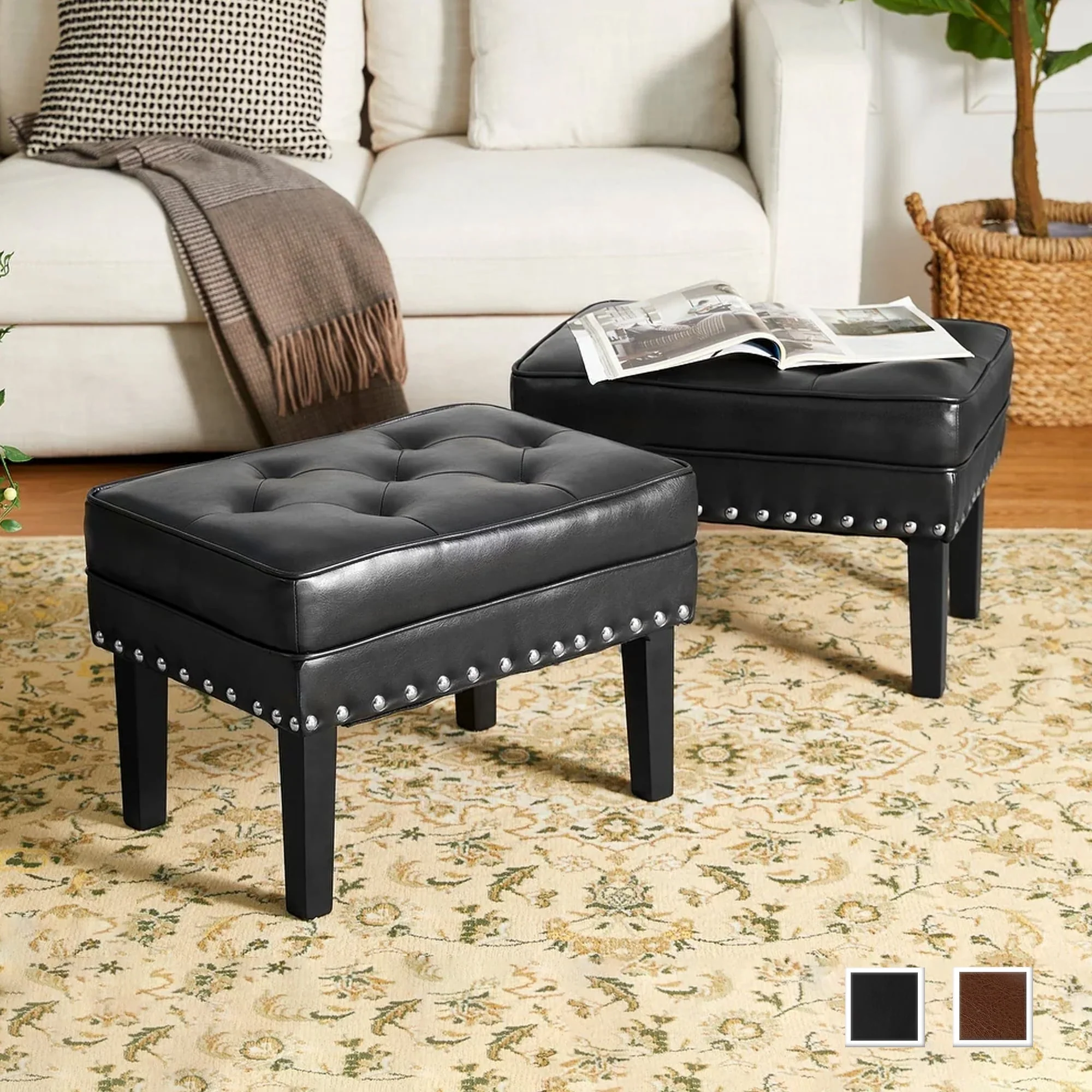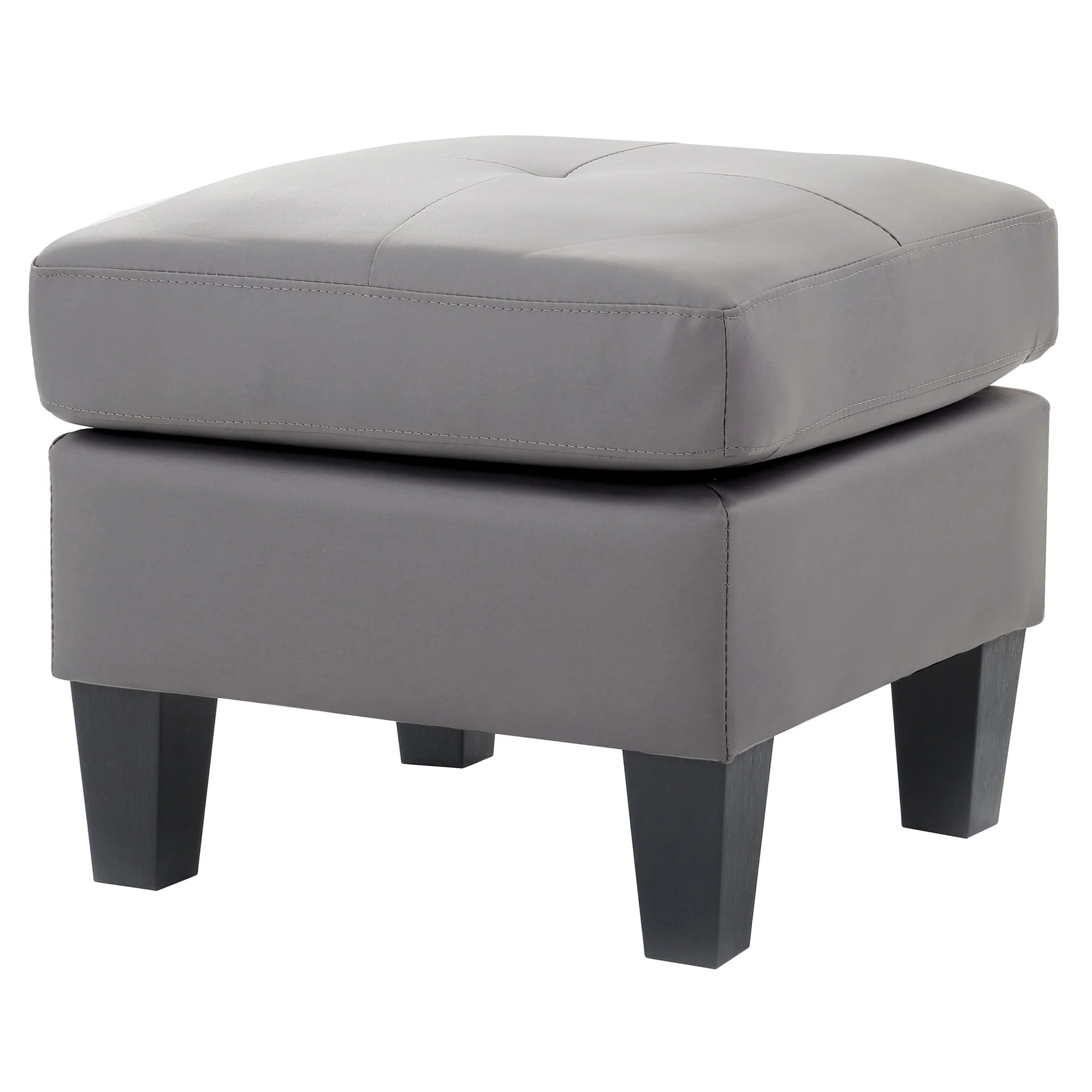 Tufted Faux Leather Upholstered Ottoman - 23 - Gray