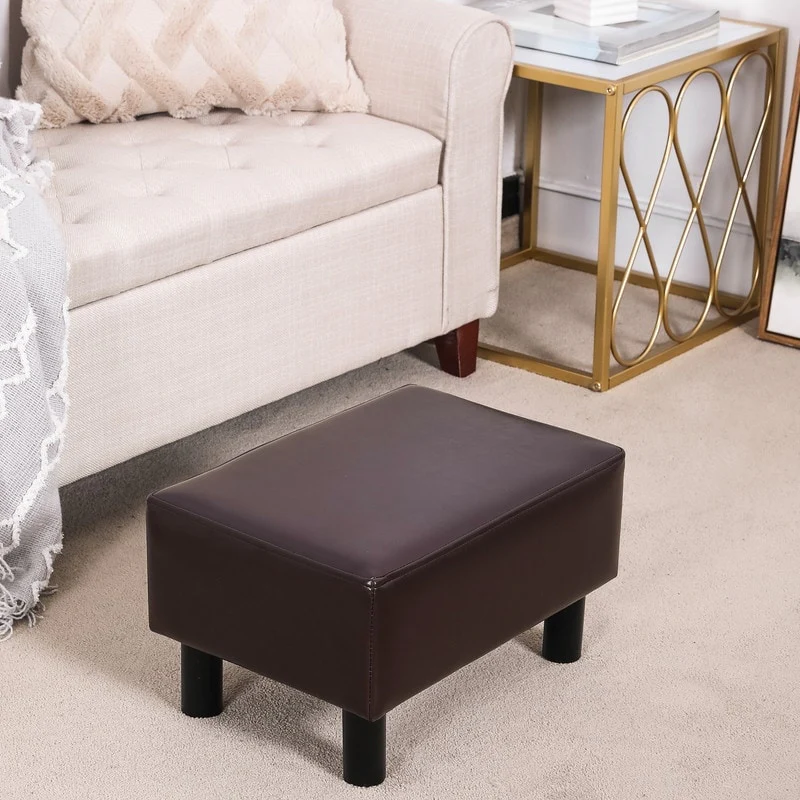 Adeco Footstool Ottoman Faux Leather Foot Rest Stool