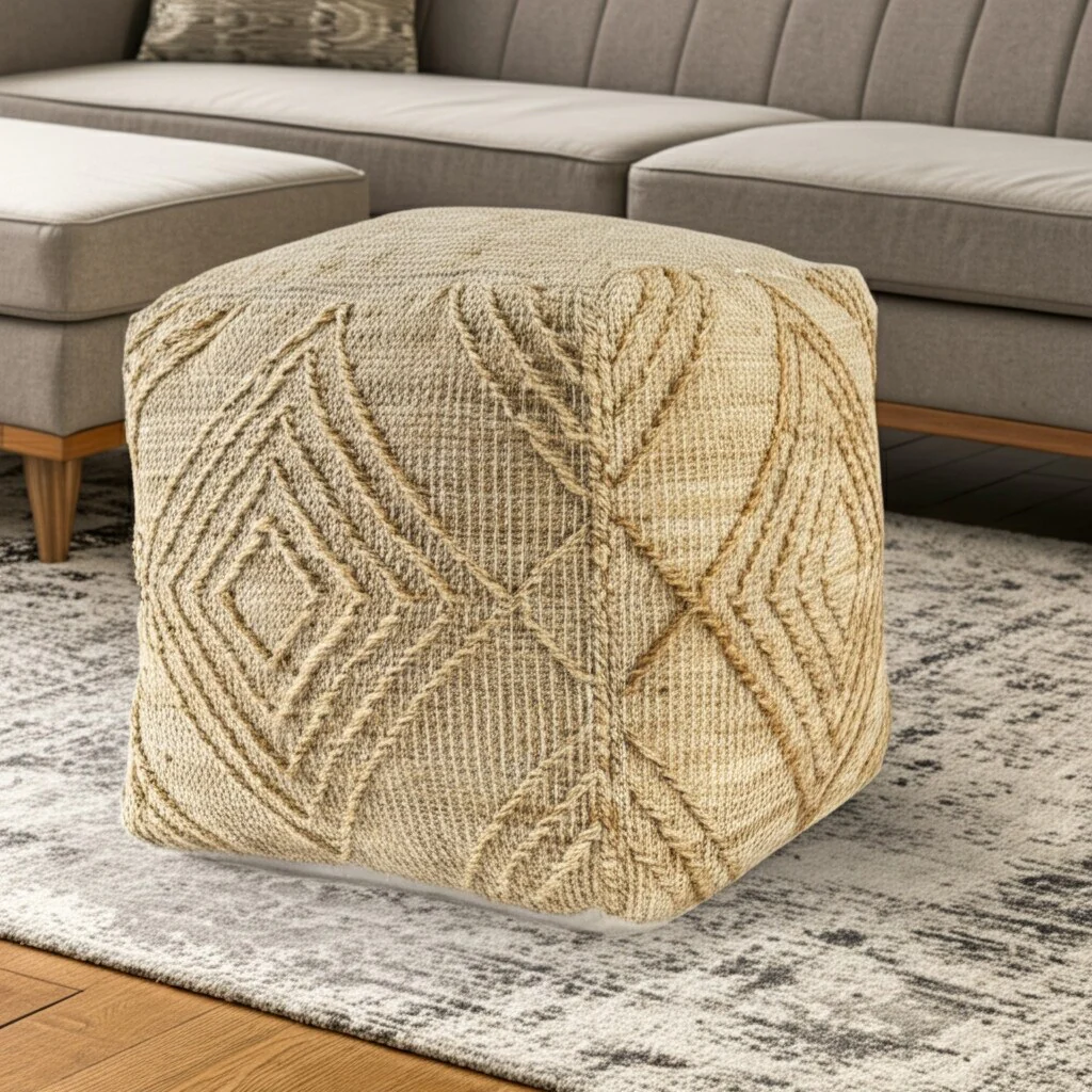 HomeRoots 18 Natural Jute Blend Cube Geometric Pouf Ottoman