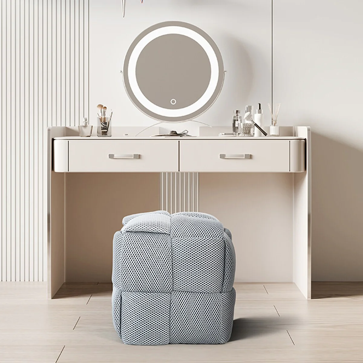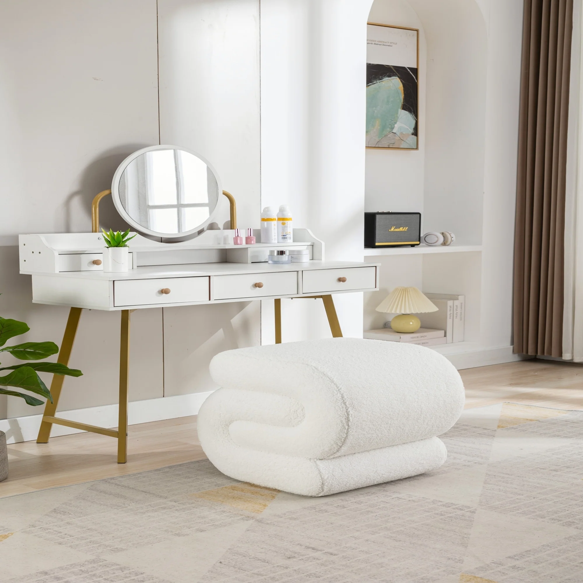 Teddy Fabric Ottoman Makeup Stool Footstool