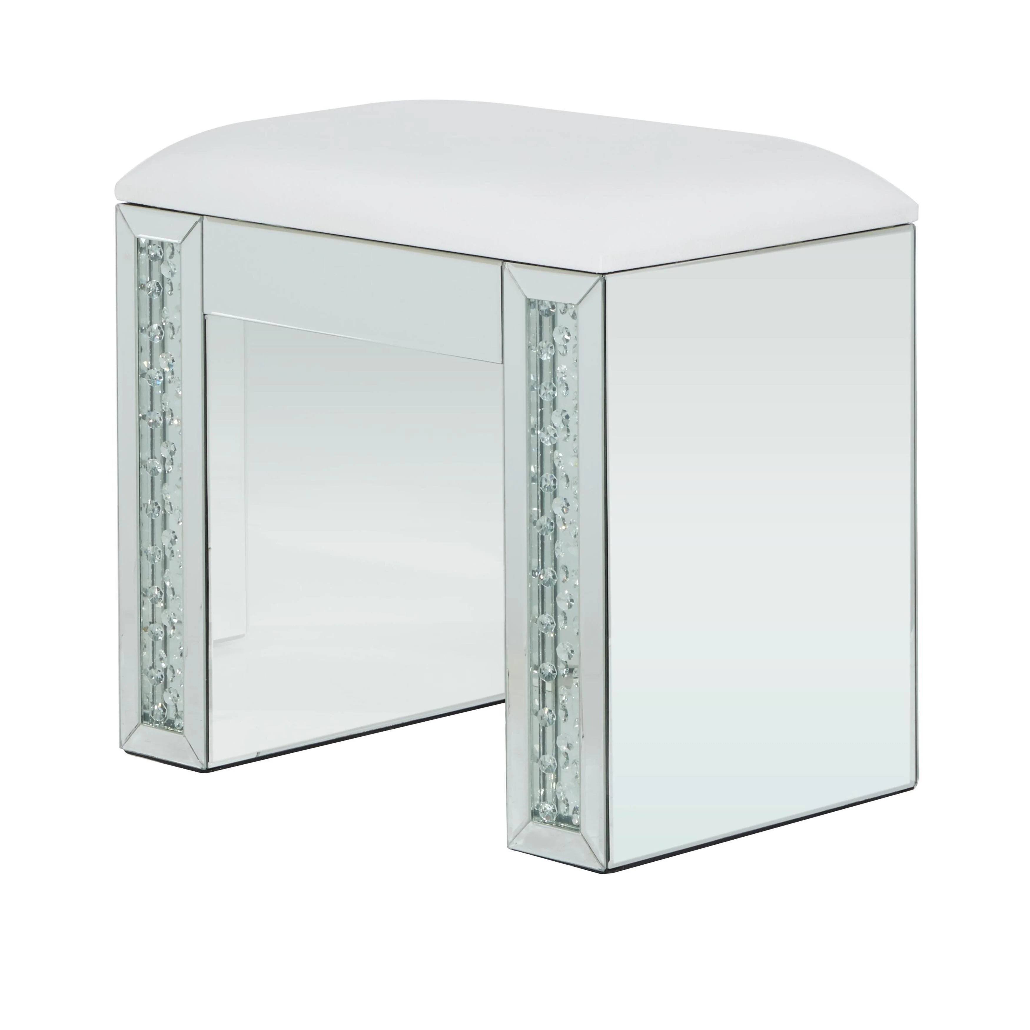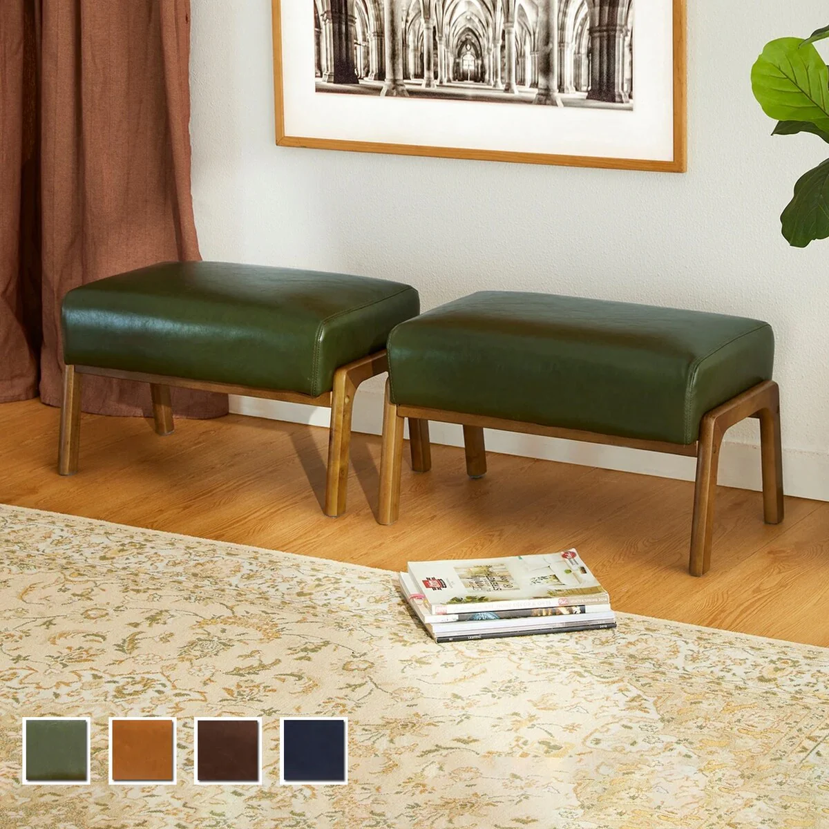 Glitzhome Set of 2 Mid-century Leatherette Ottoman Accent Stools