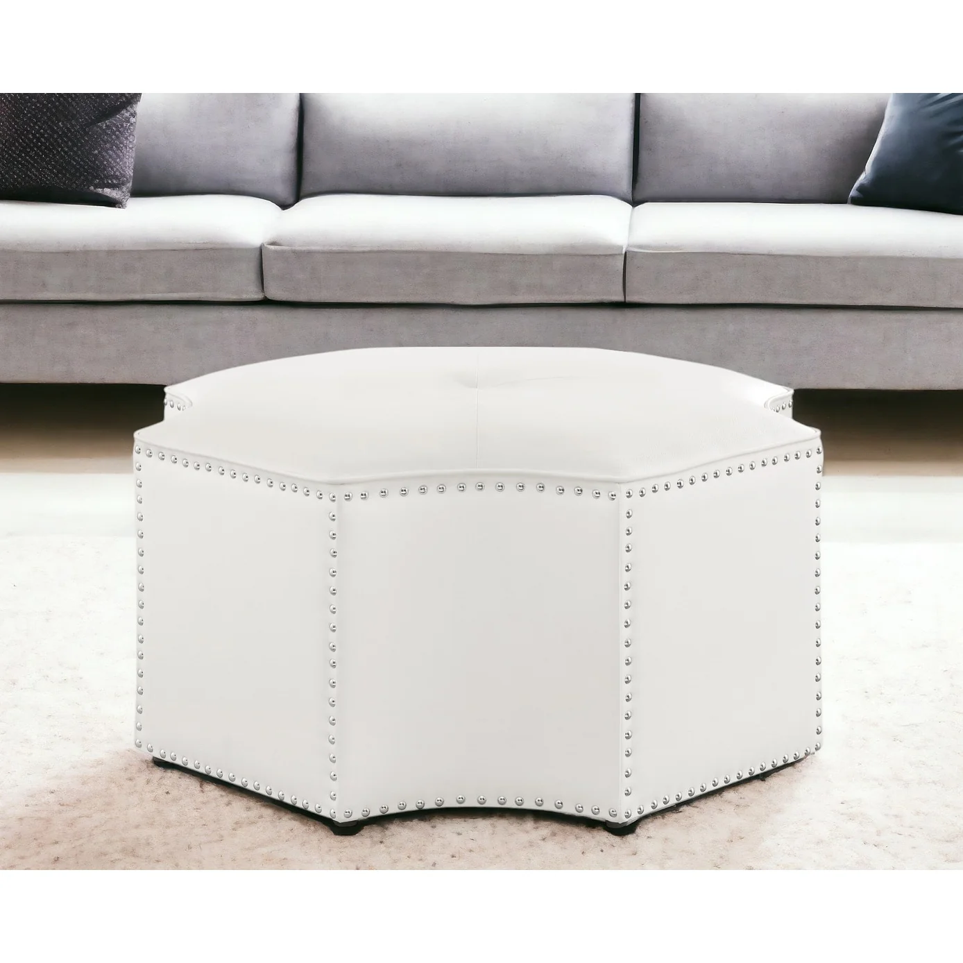 33 White Faux Leather Tufted Octagonal Cocktail Ottoman