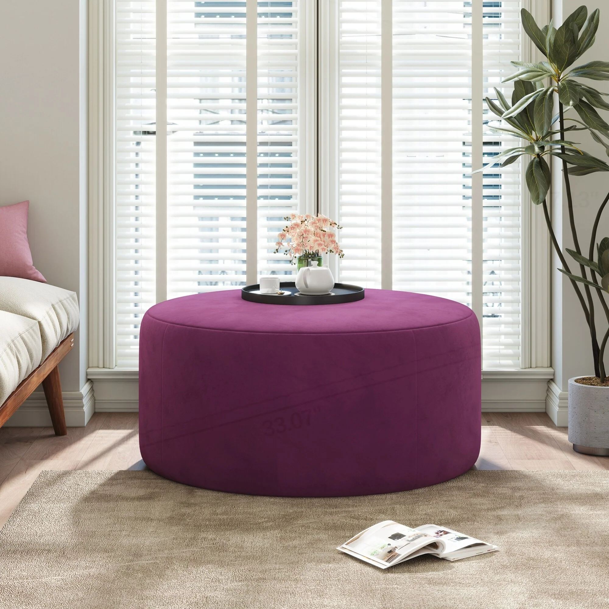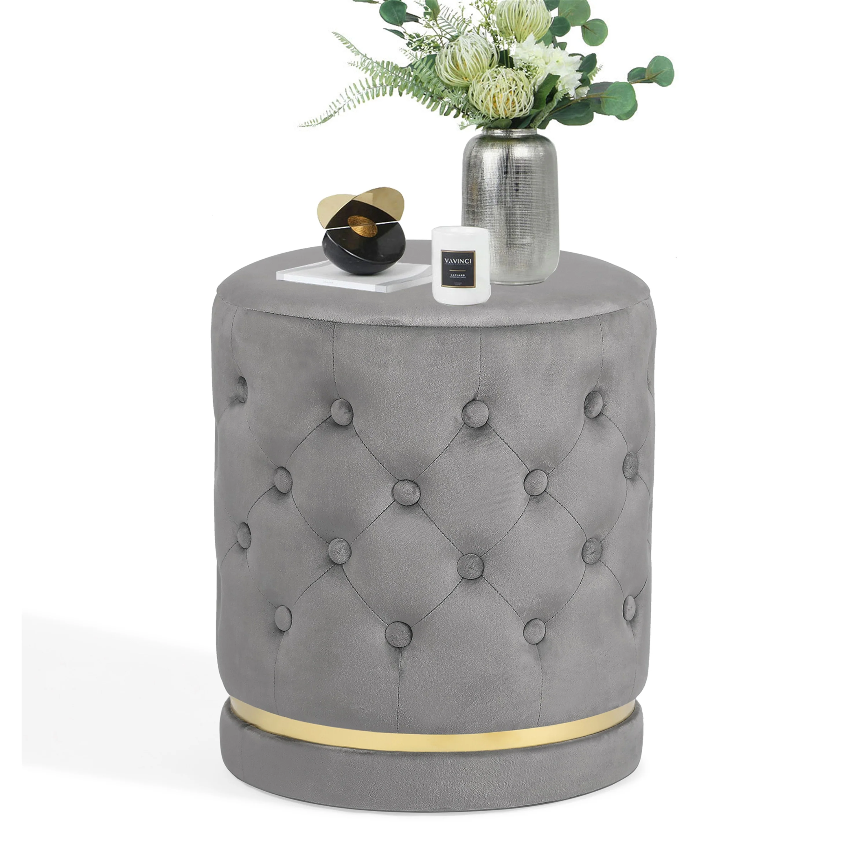 Adeco 18.3 Height Button Tufted Upholstered Round Ottoman