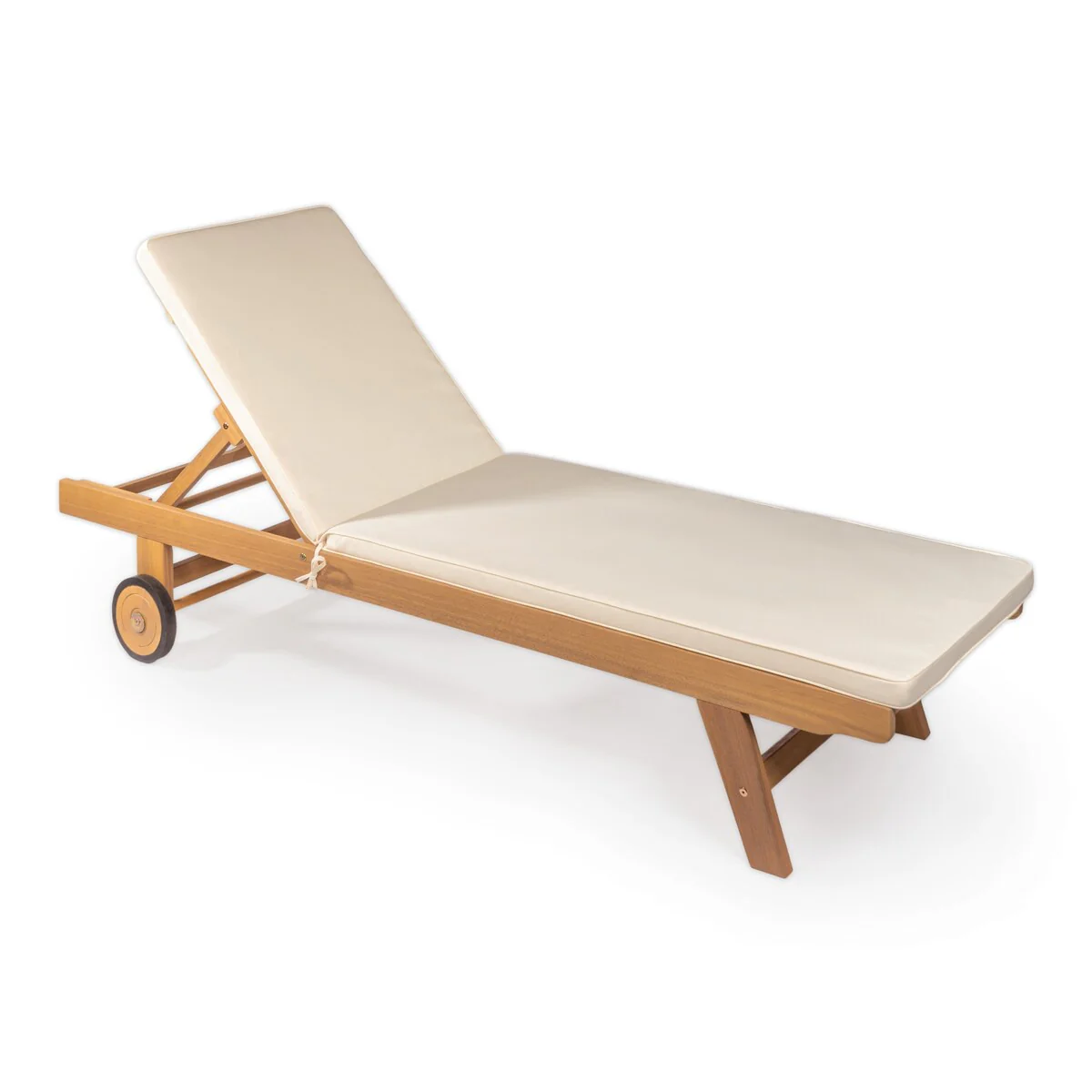 Acacia Wood Wheeled Chaise Lounge Adjustable Backrest Cushion
