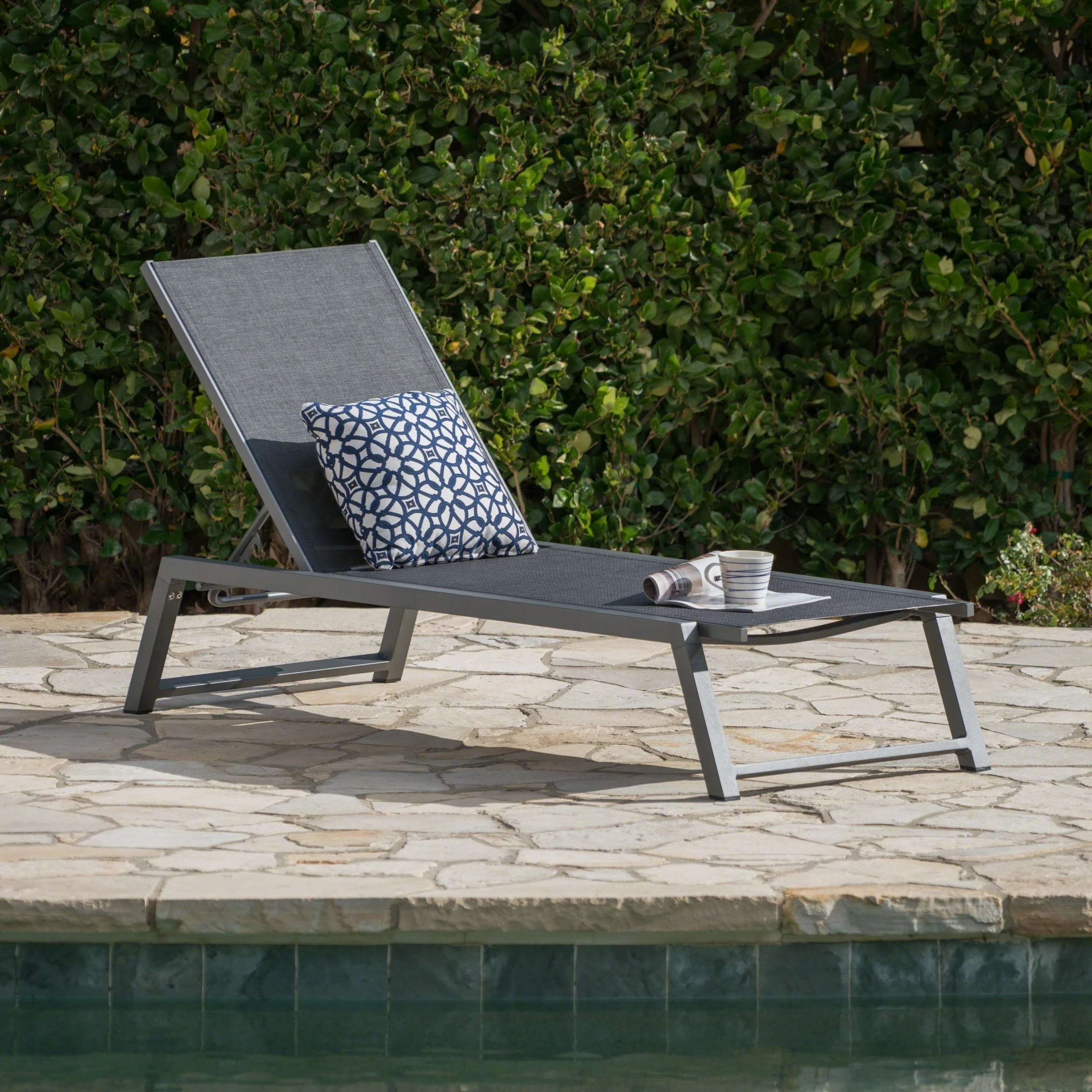 Outdoor Single Cast Aluminum Adjustable Chaise Lounge