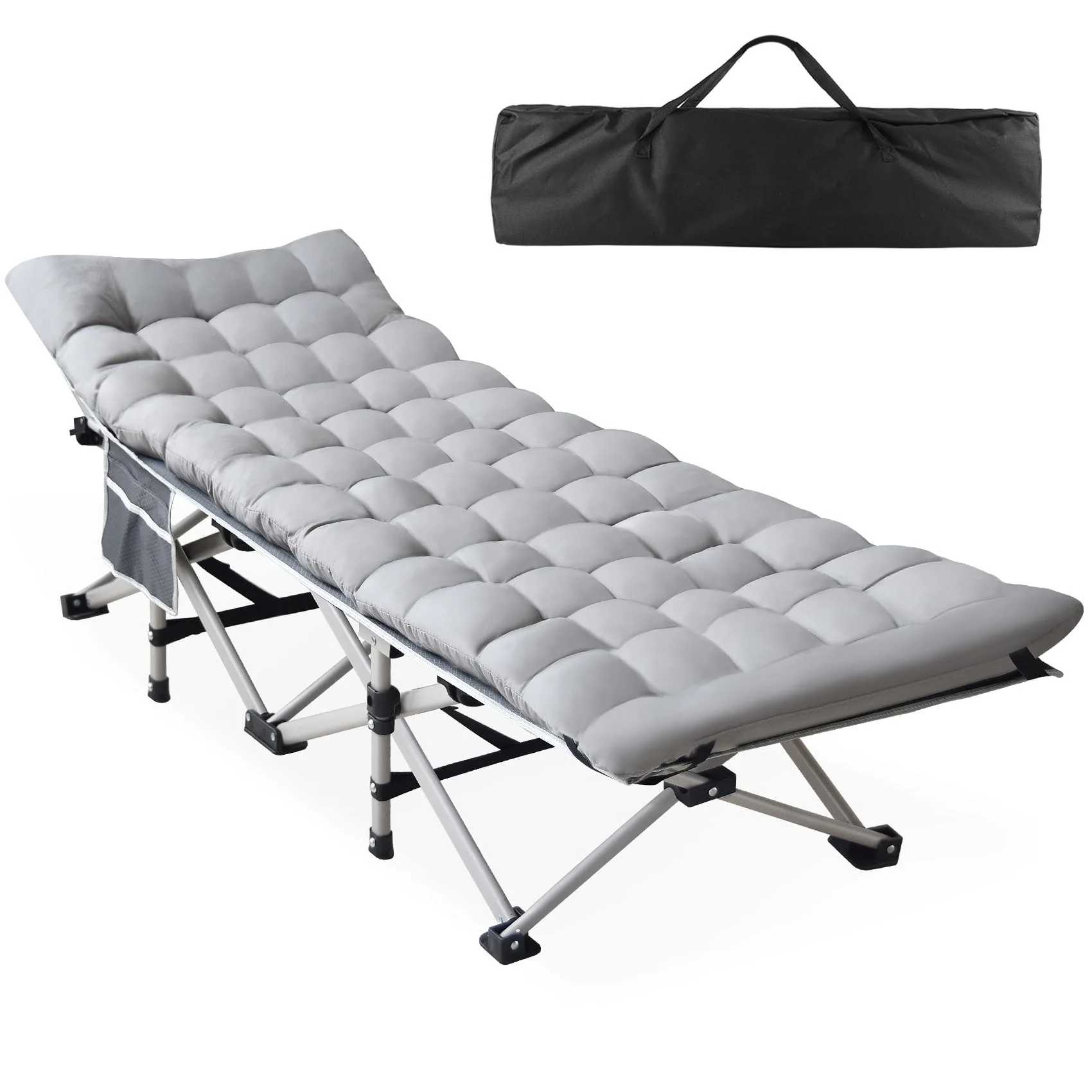 Outdoor Grey Heavy-Duty Portable Folding Cots for Camp
