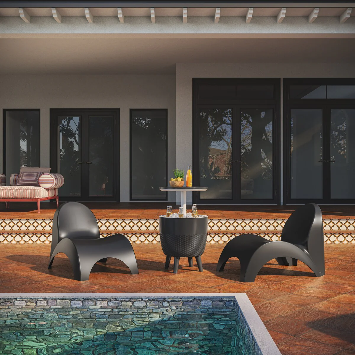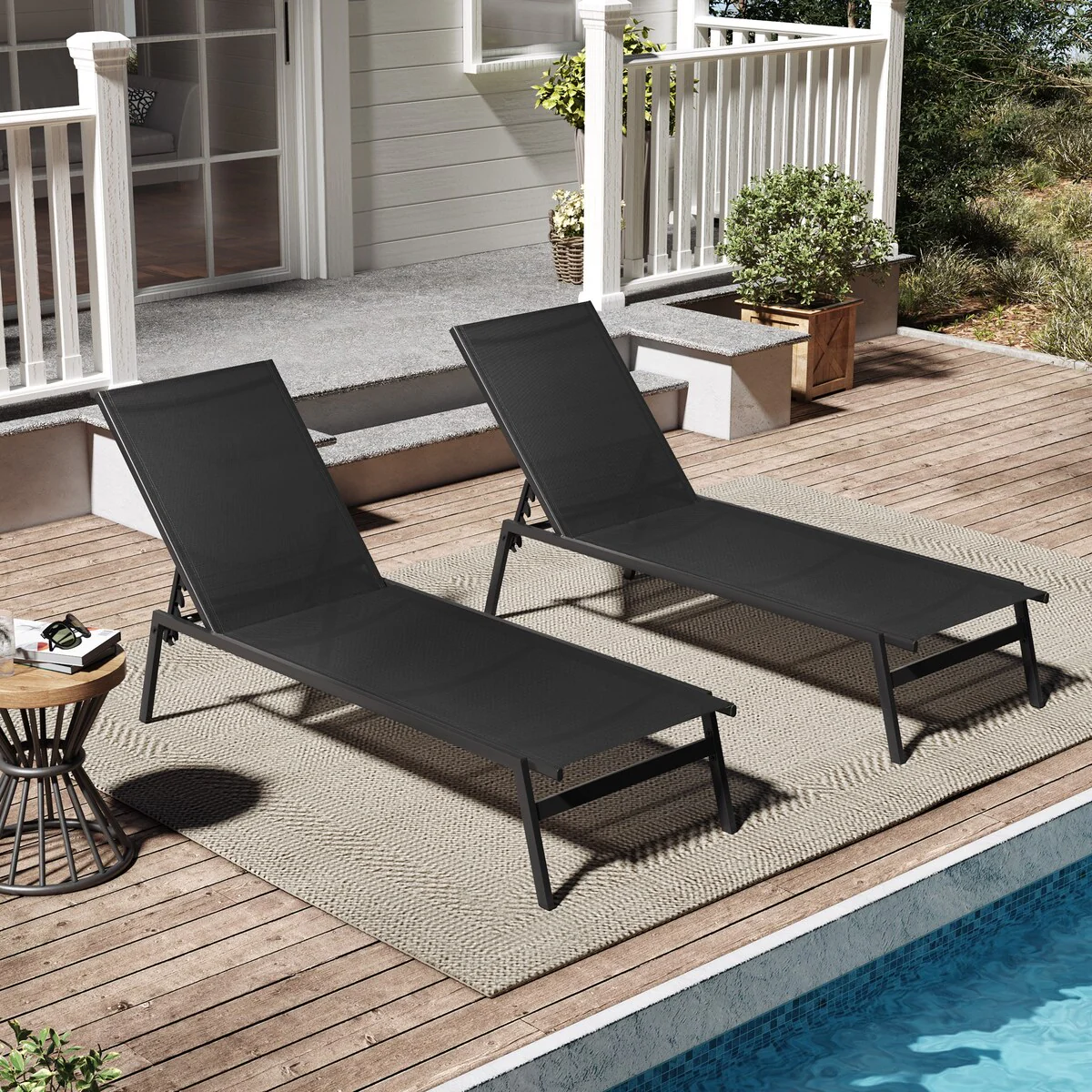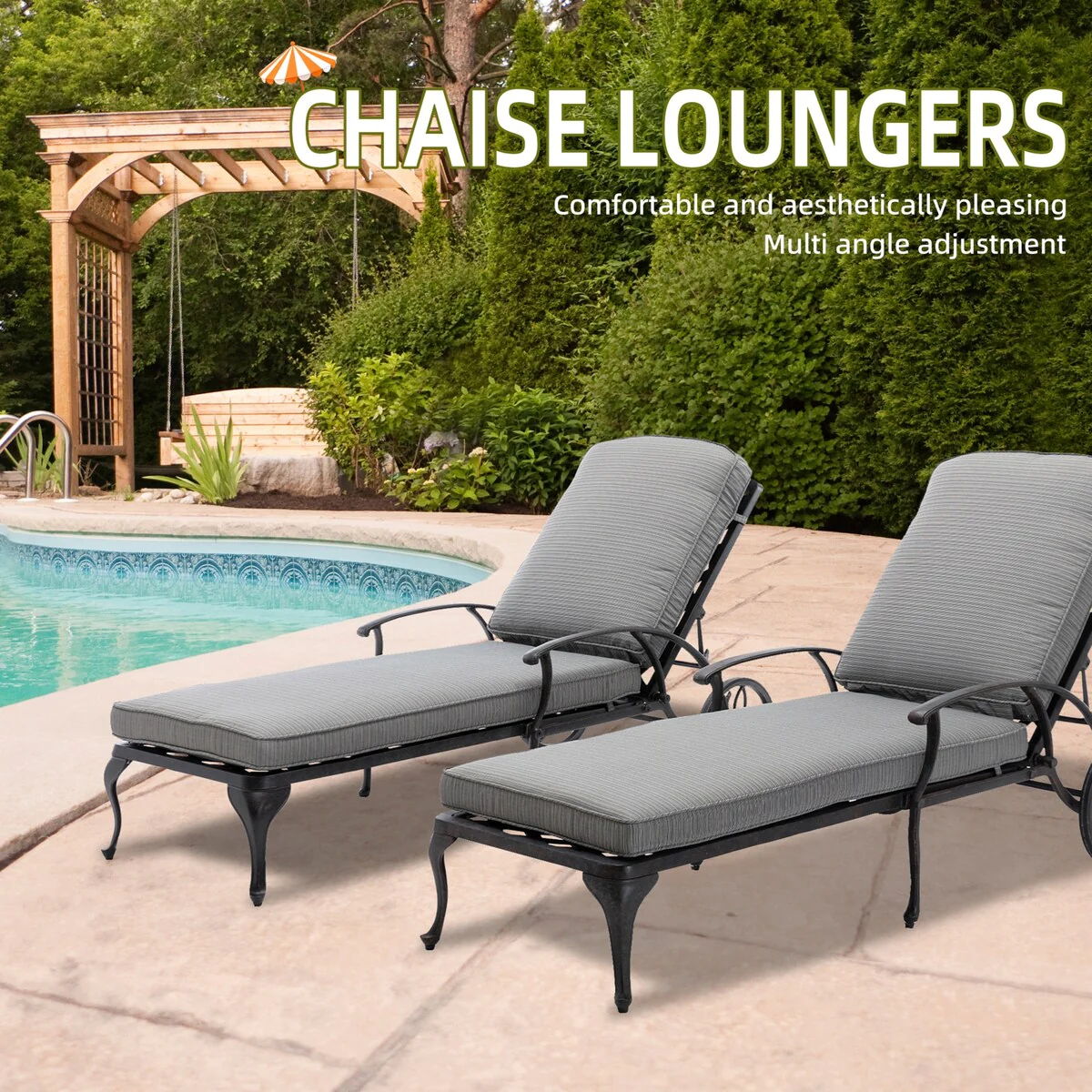 3PC Deep Cushion Chaise Set, 5 Level Adjustable PE Rattan Pool