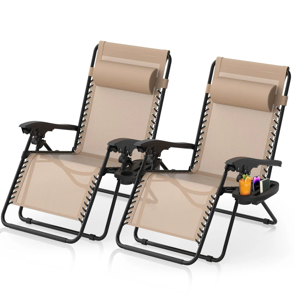 2PC Recliner, Deep Cushion PE Rattan Patio Chair, Cream