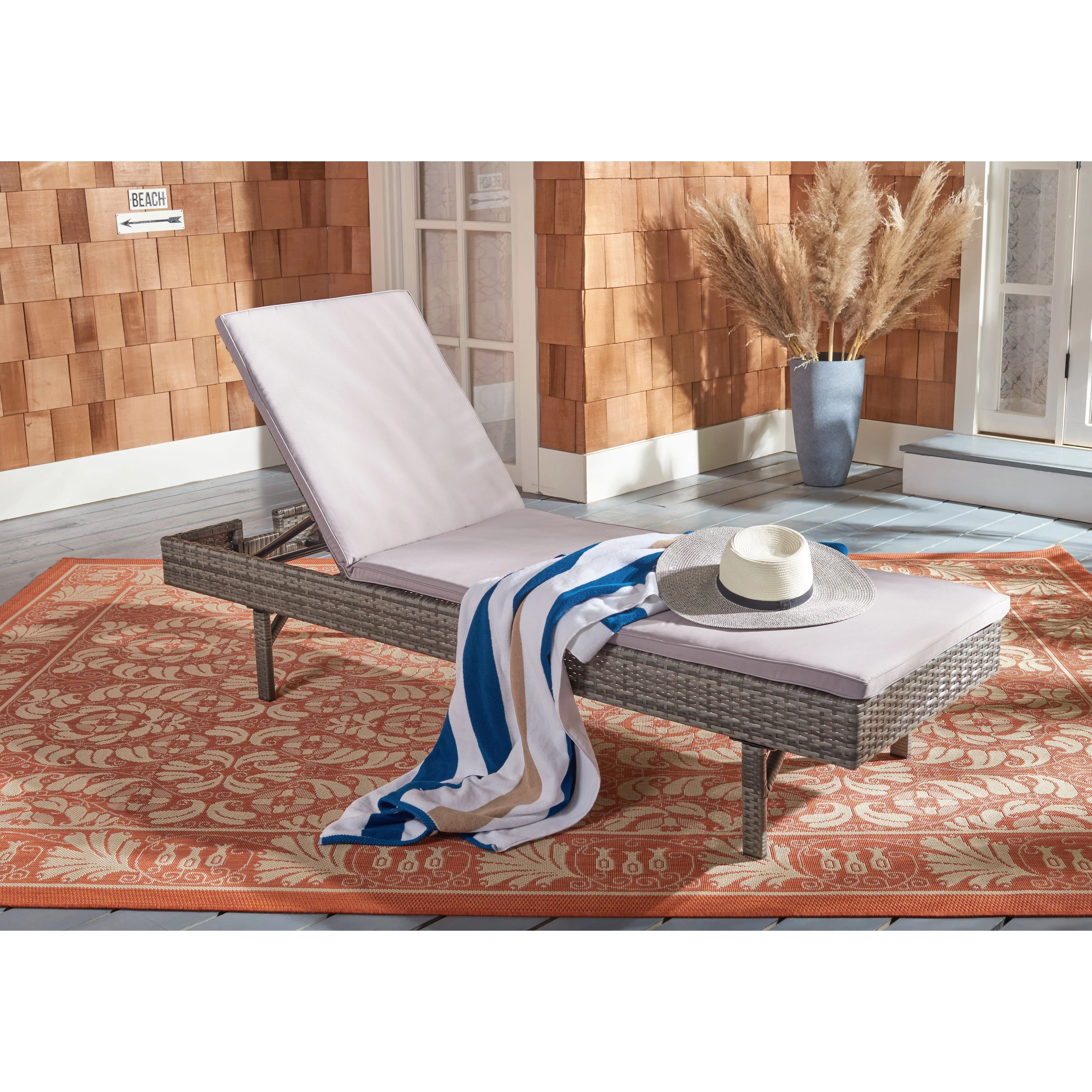 SAFAVIEH Outdoor Cam Sun Lounger with Cushion - 25W x 77D x 41H