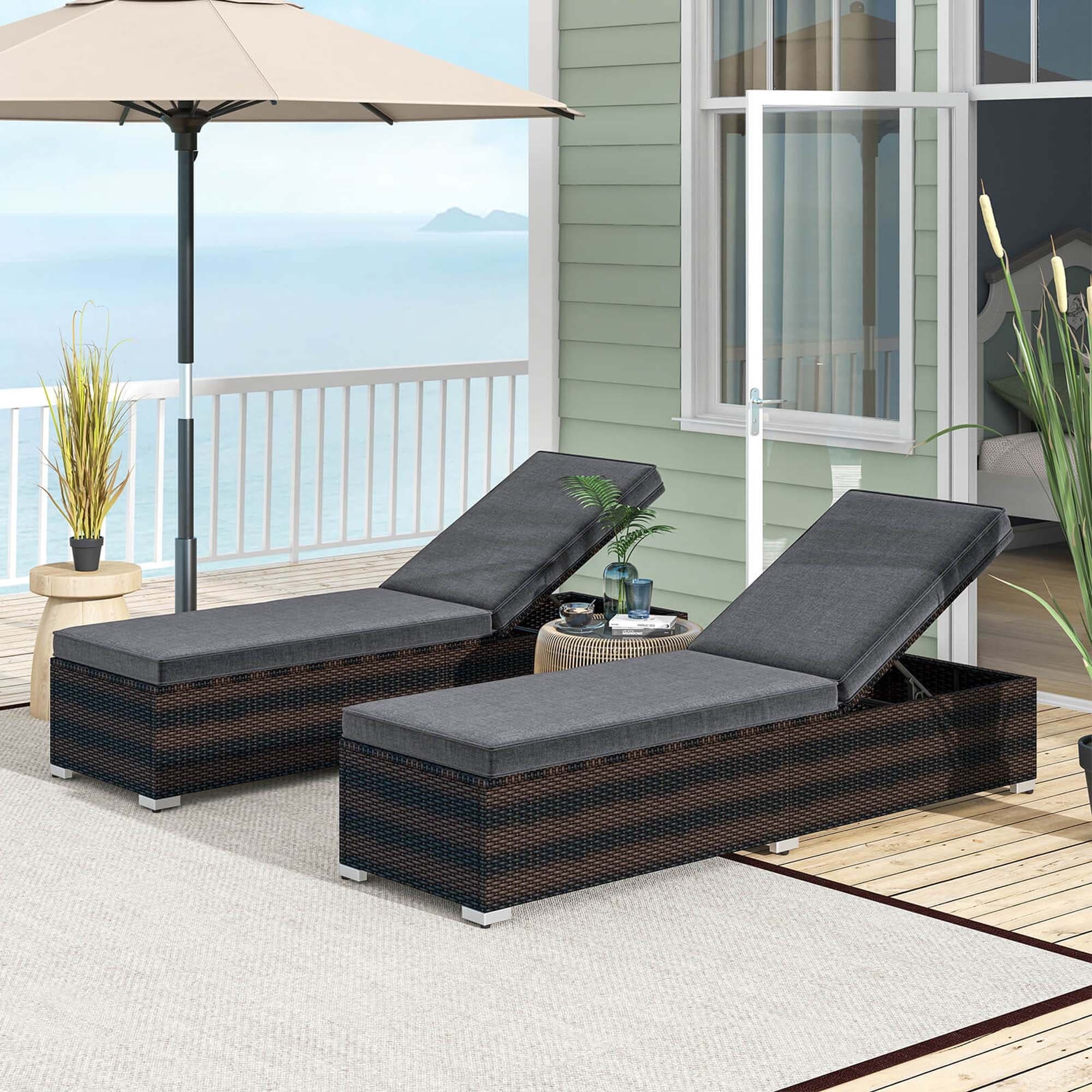 Outdoor Chaise Lounge Set of 2, PE Rattan Wicker