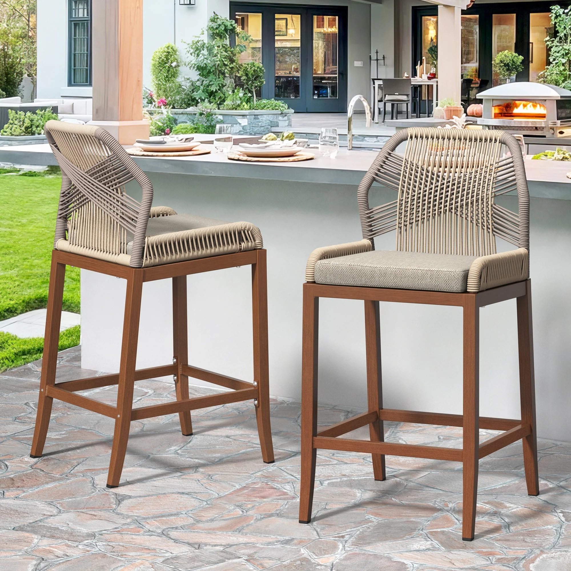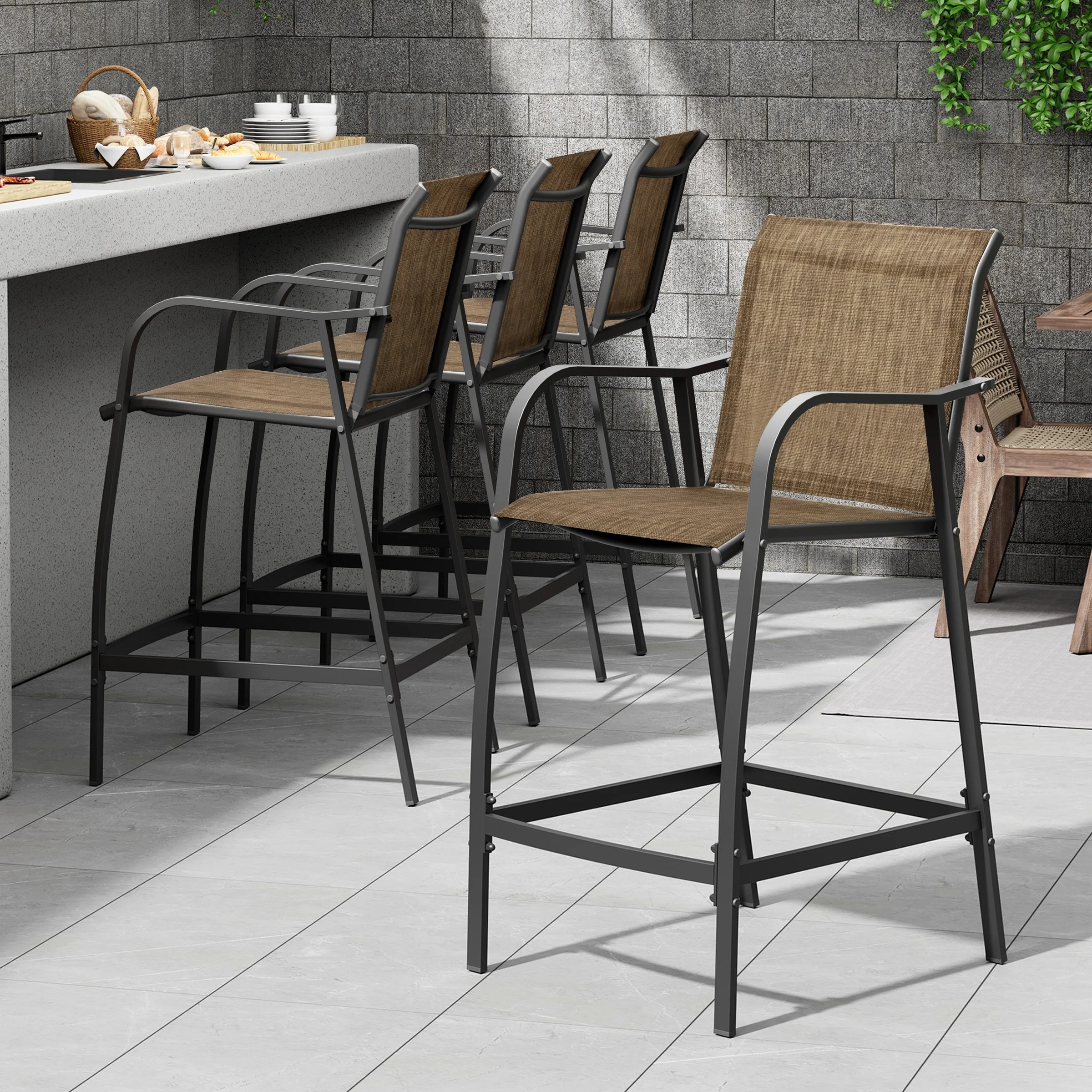 Outdoor Patio Aluminum Sunbrella Fabric Swivel Barstools
