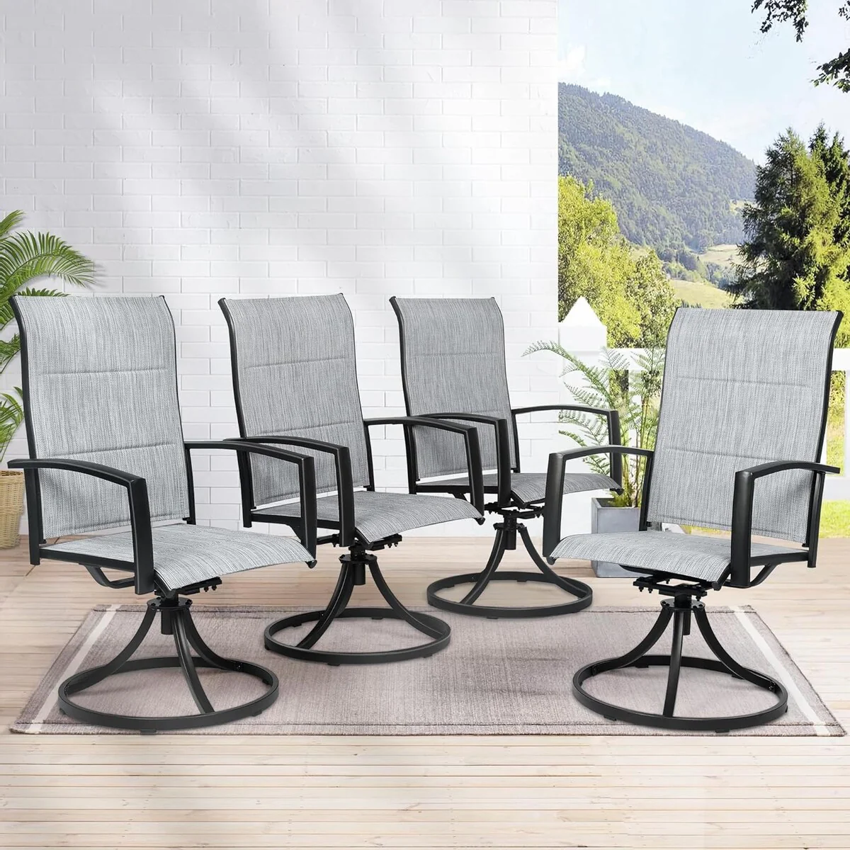 Outdoor Patio Swivel Bar Stools, All-Weather Textilene, Brown
