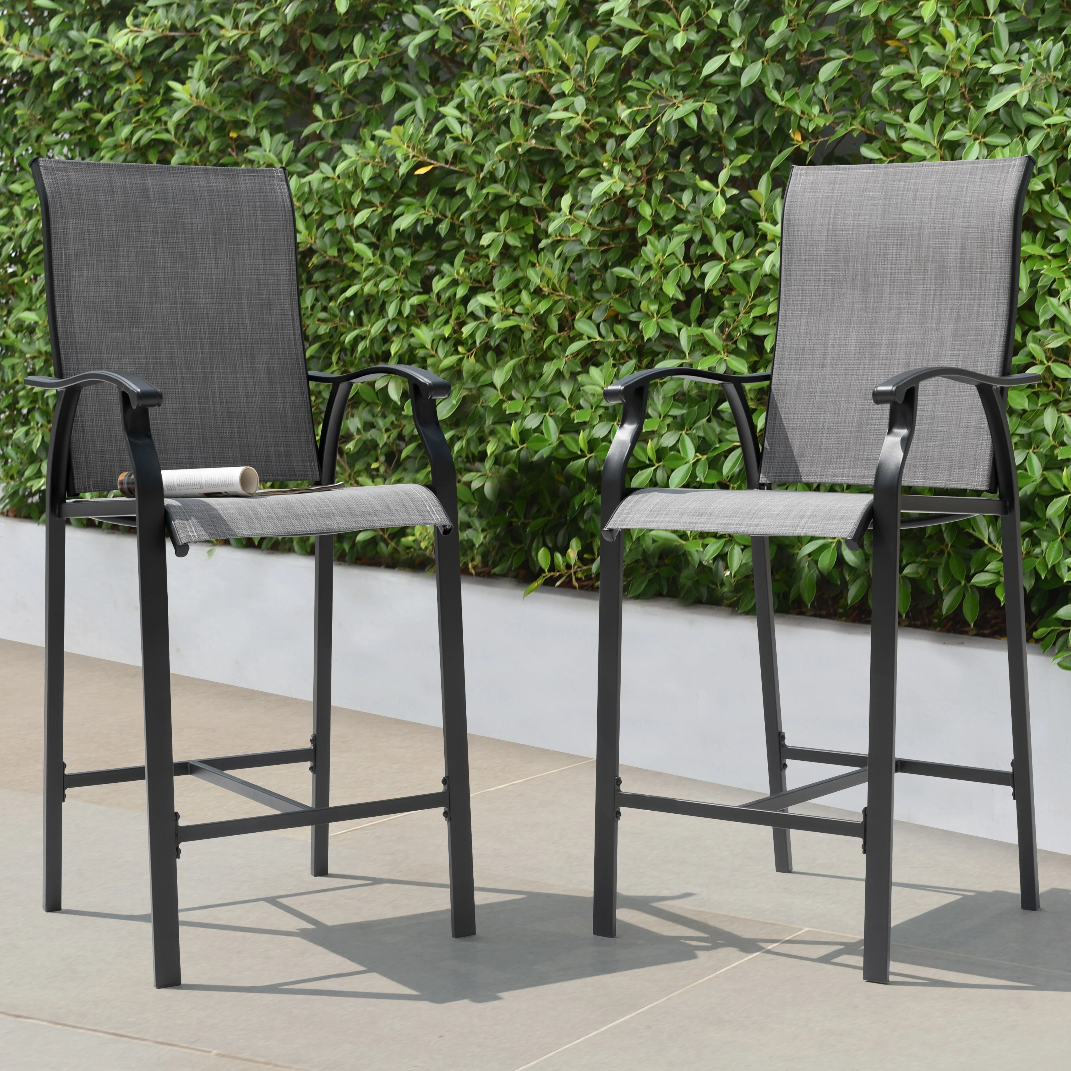 Outdoor 2-Piece Textilene Bar Stools with High Backrest, Gray