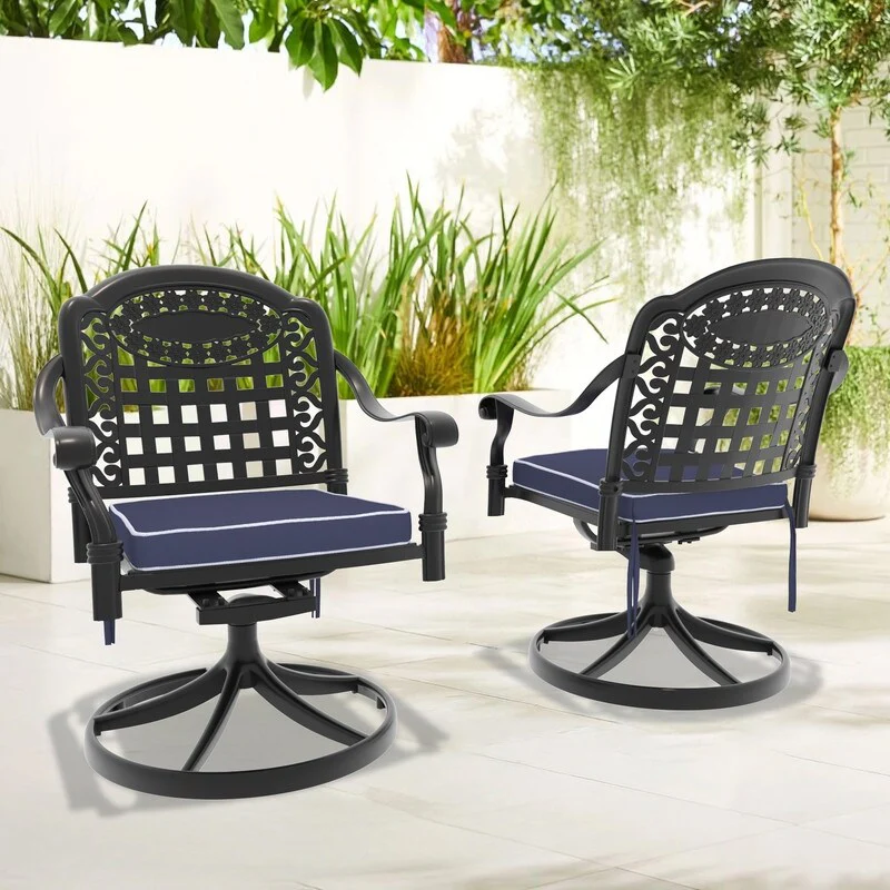 Black Swivel Aluminum Patio Outdoor Dining Chair (2-Pack)