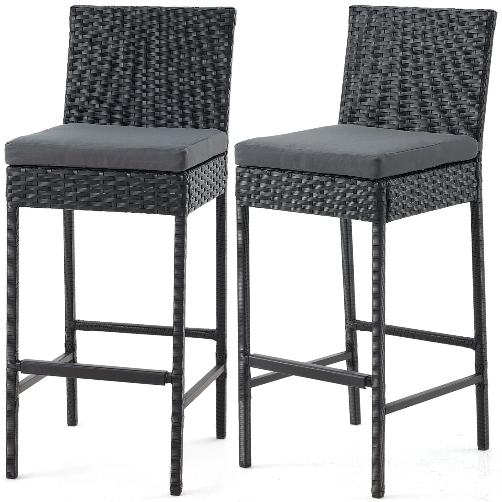 AVAWING Set of 2 Patio Wicker Barstools Rattan Bar Height Chairs