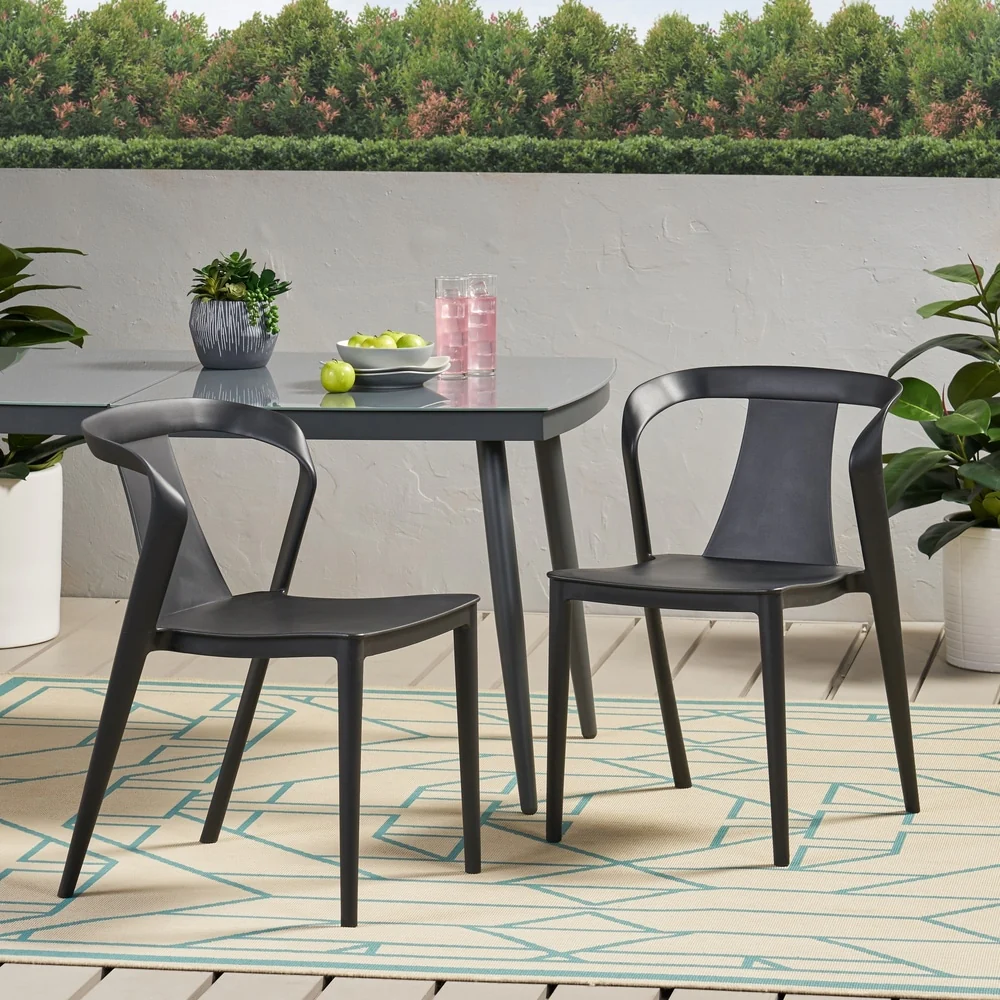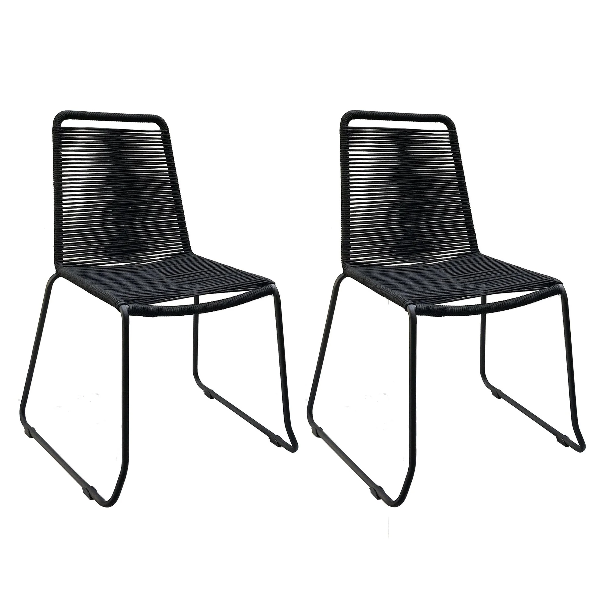 Patio 2-Piece Dining Chair Set, Powder-coated Iron Frame, Black