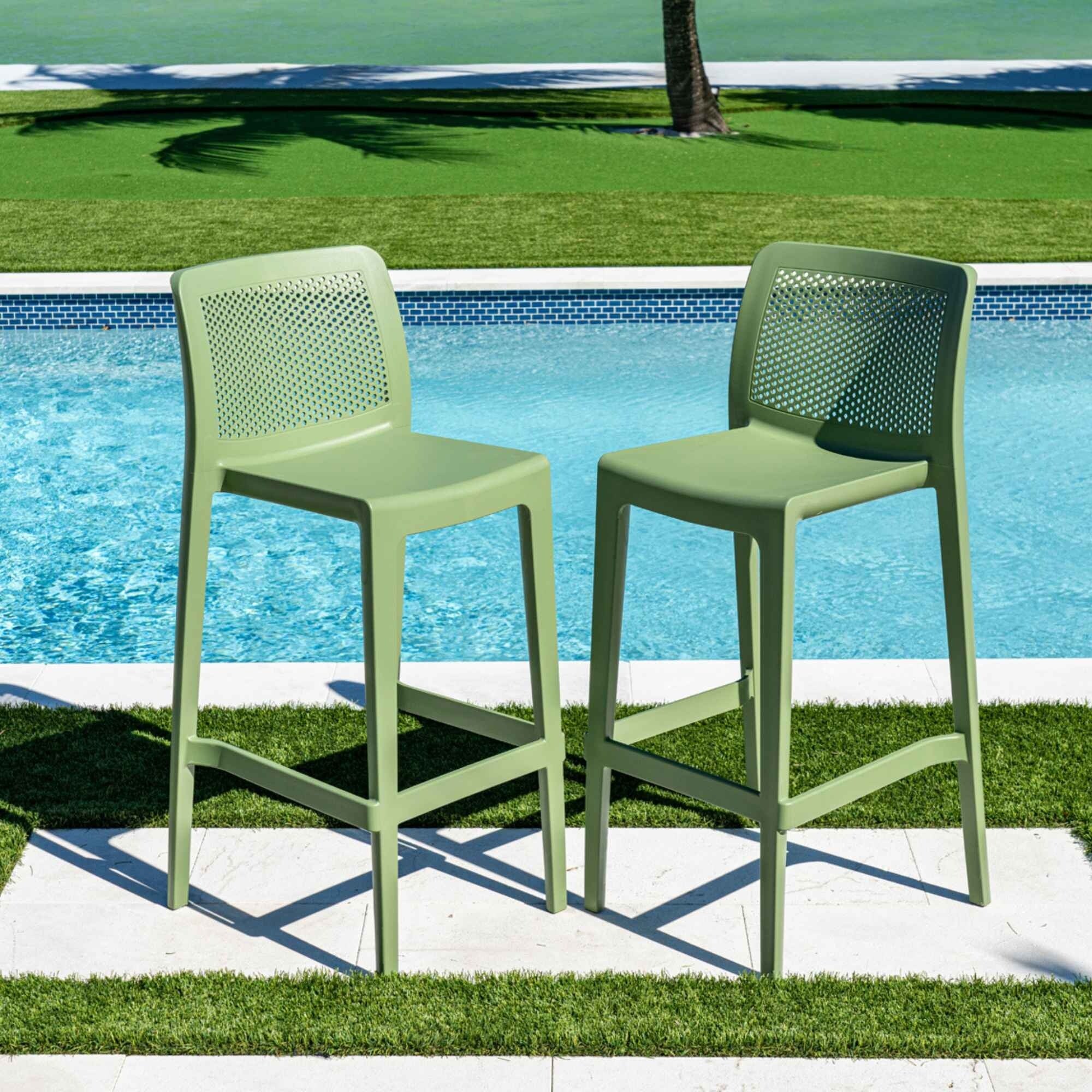 Milos Resin Stackable Bar Stools, Set of 2