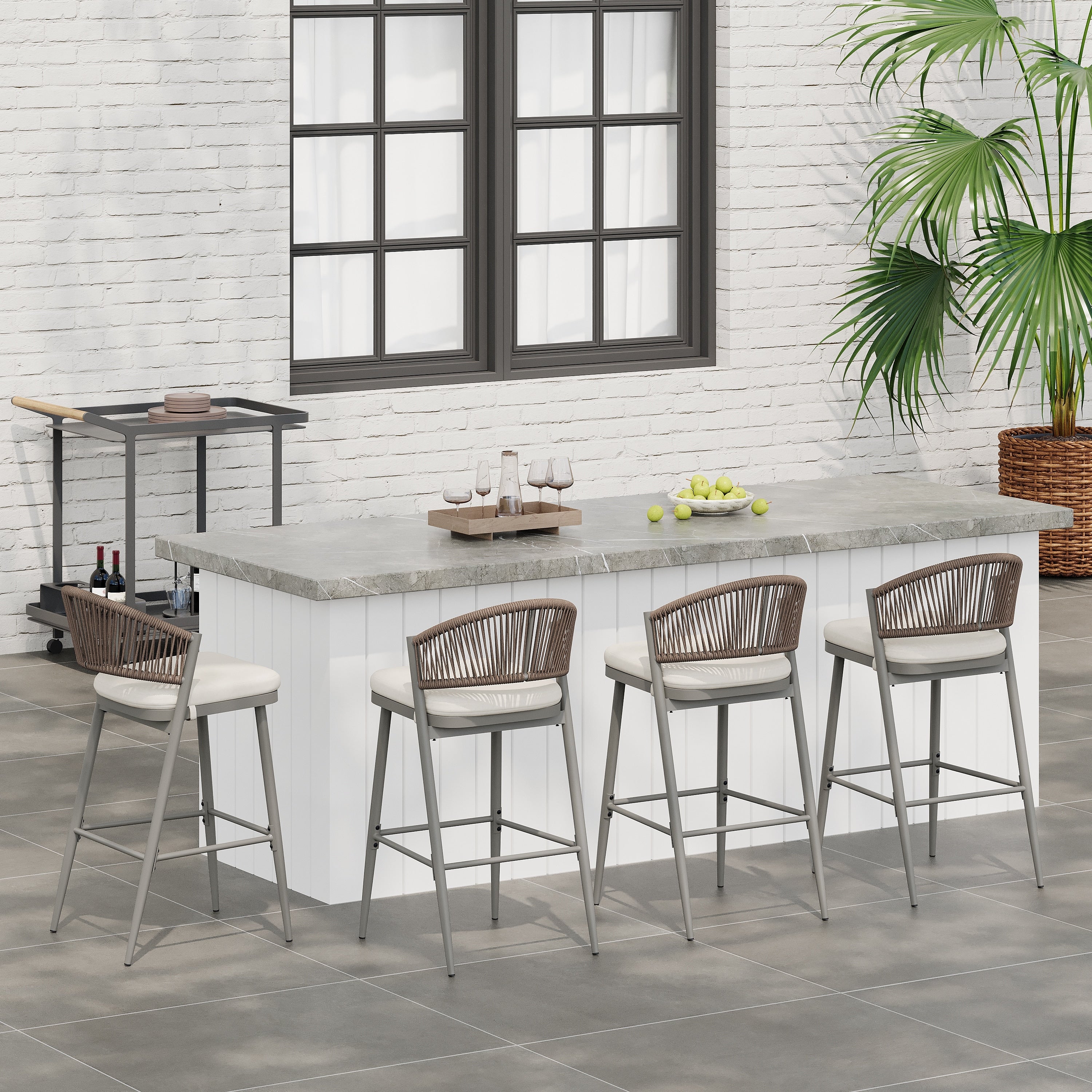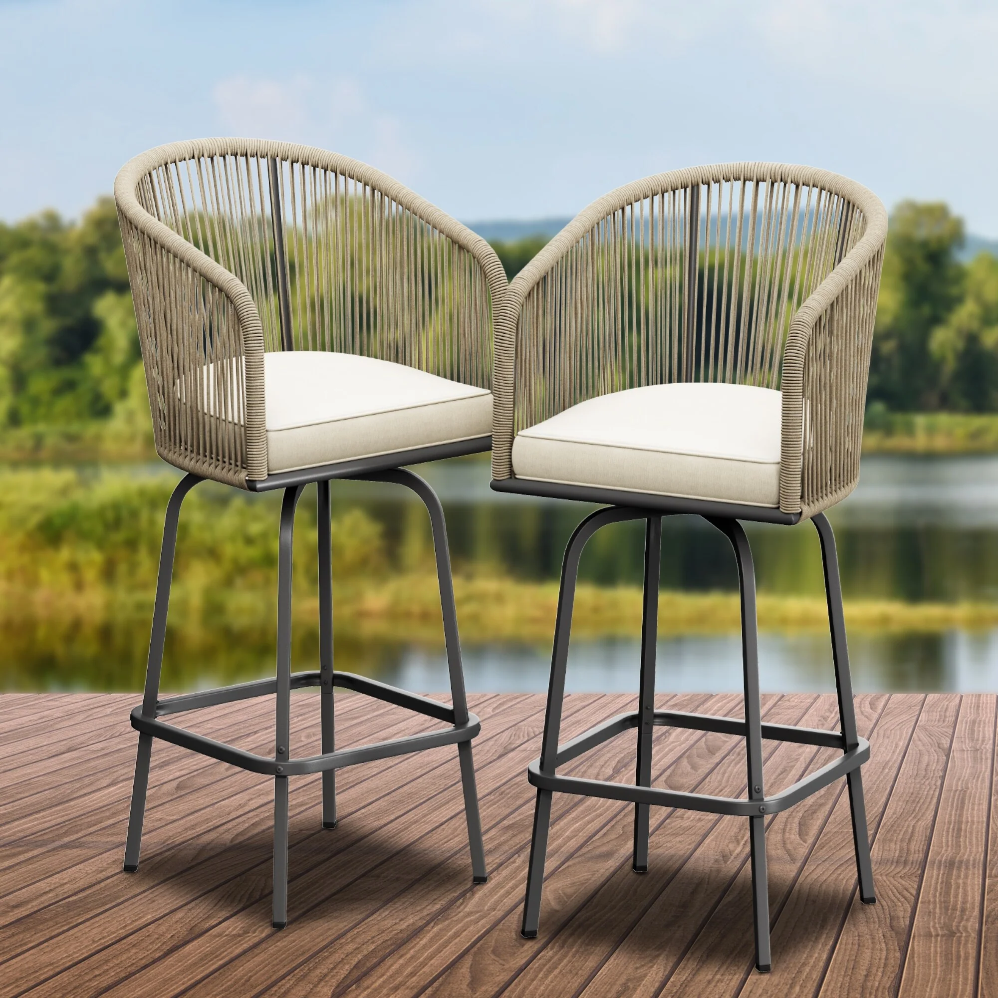Outdoor Swivel Metal Cushioned Bar Height Patio Chairs Set of 4