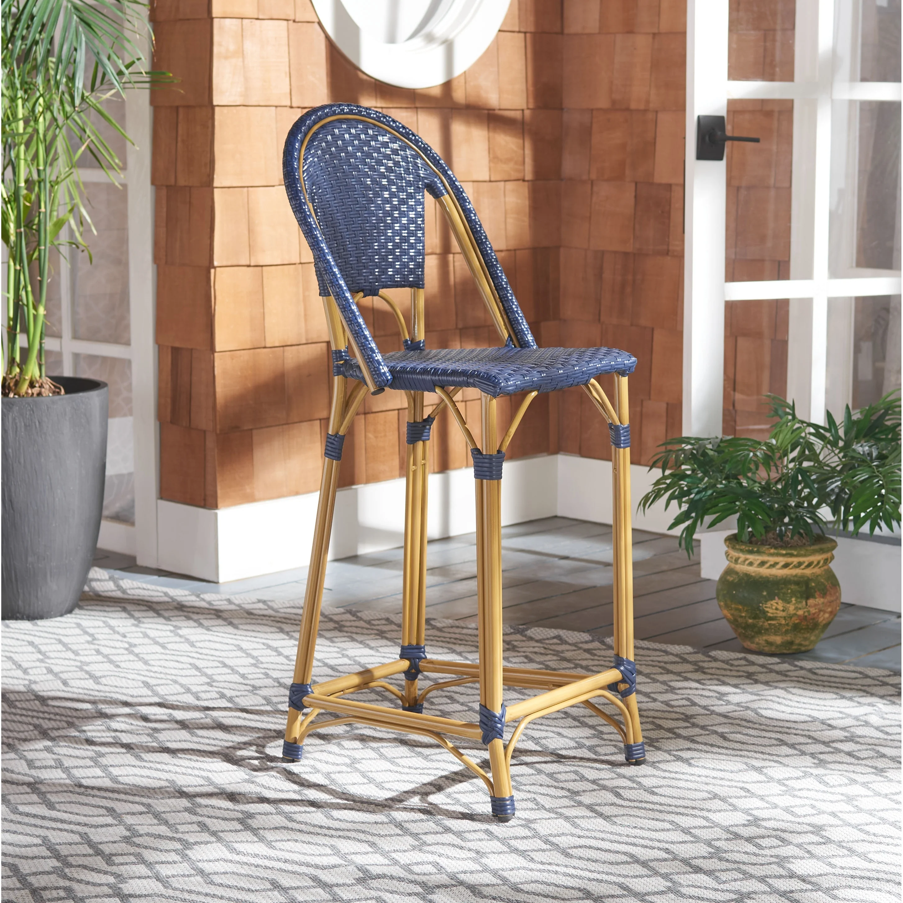 Tobias Outdoor Rattan and Metal Counter Stool