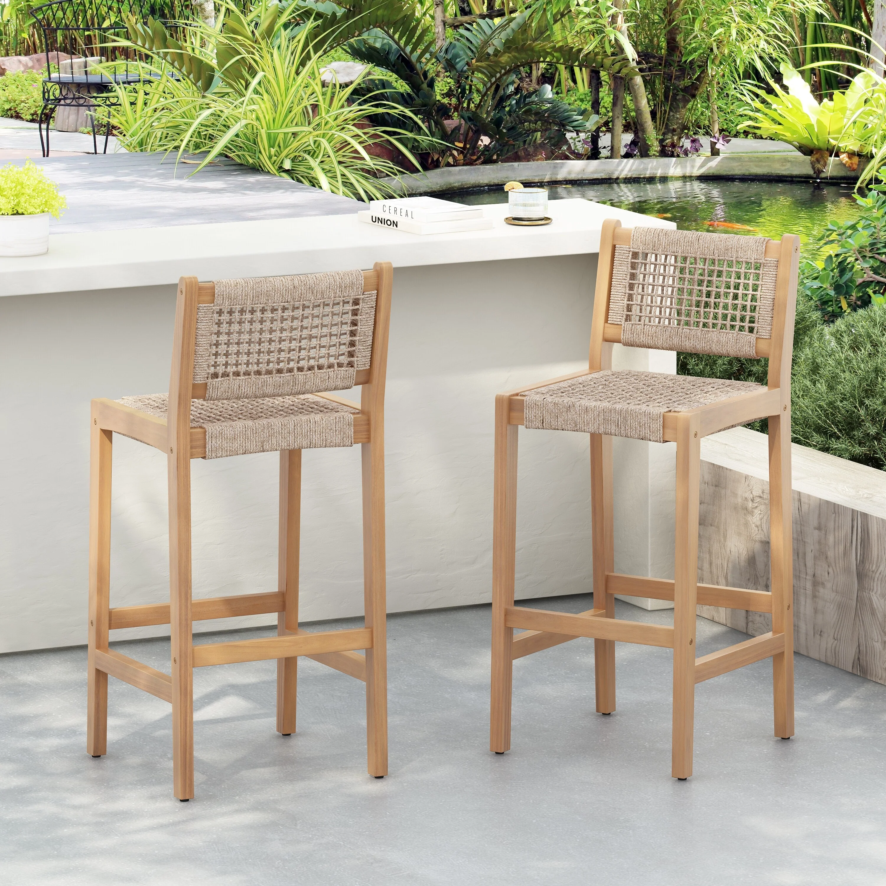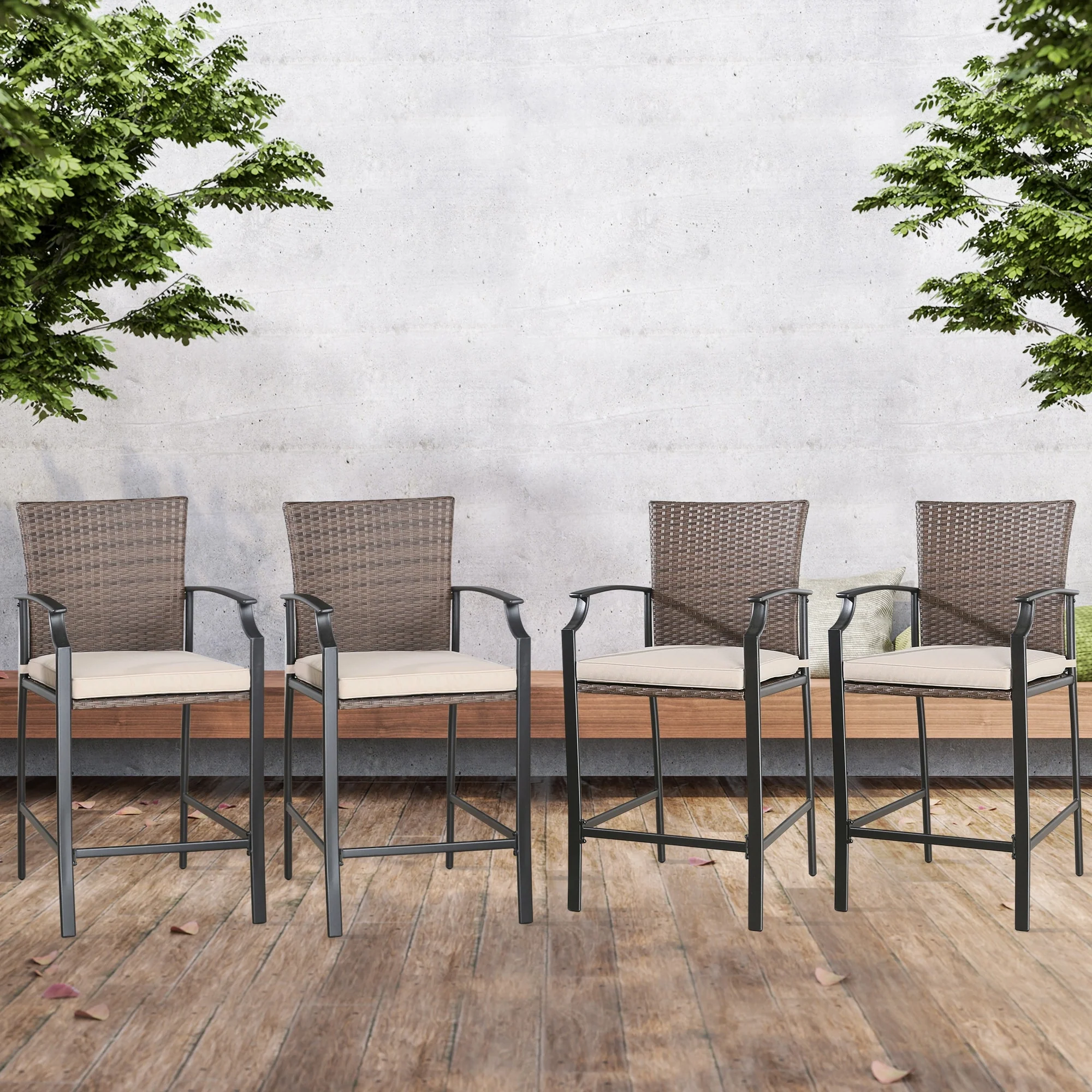 Outdoor Wicker Bar Stools Set of 4 Patio Height Bar Chairs