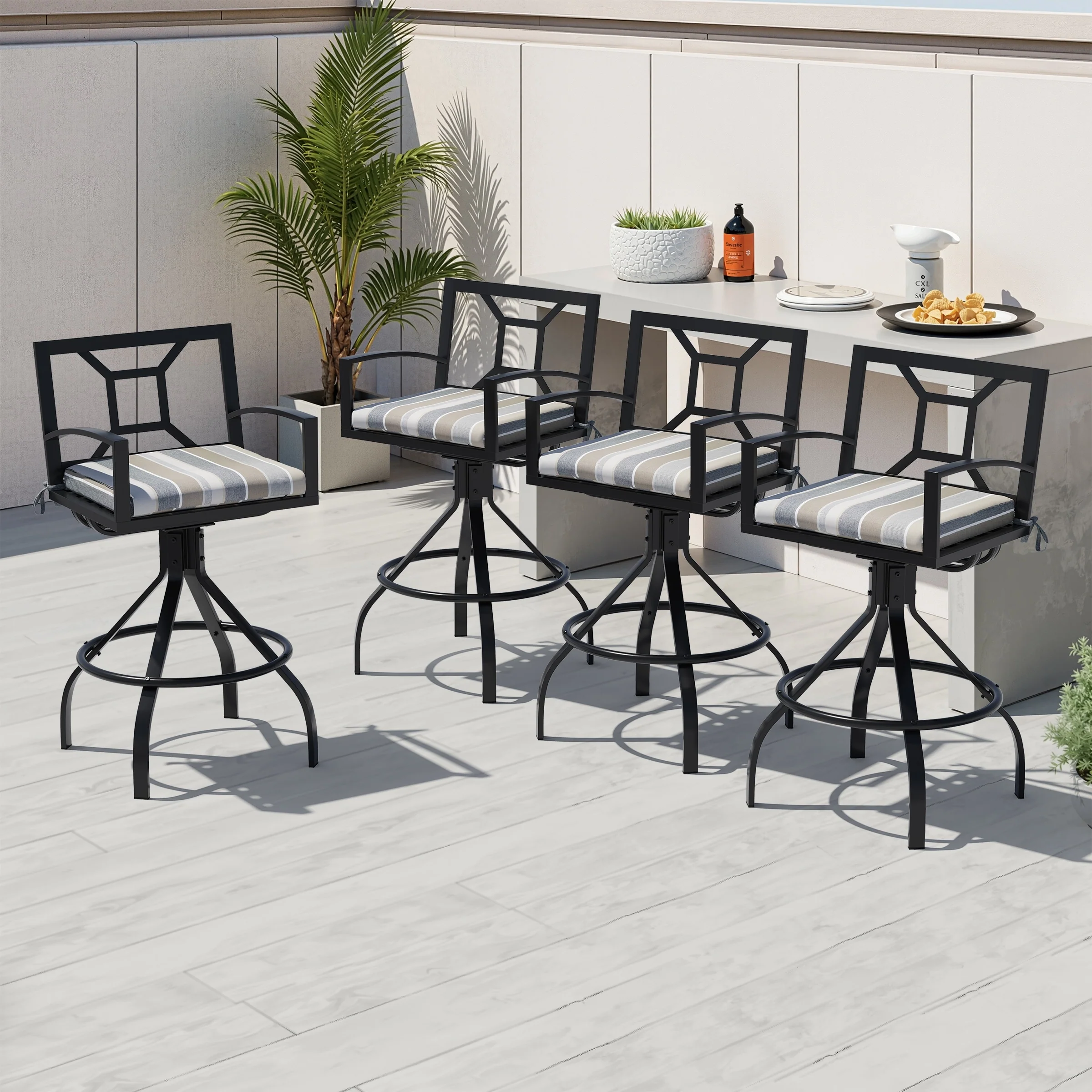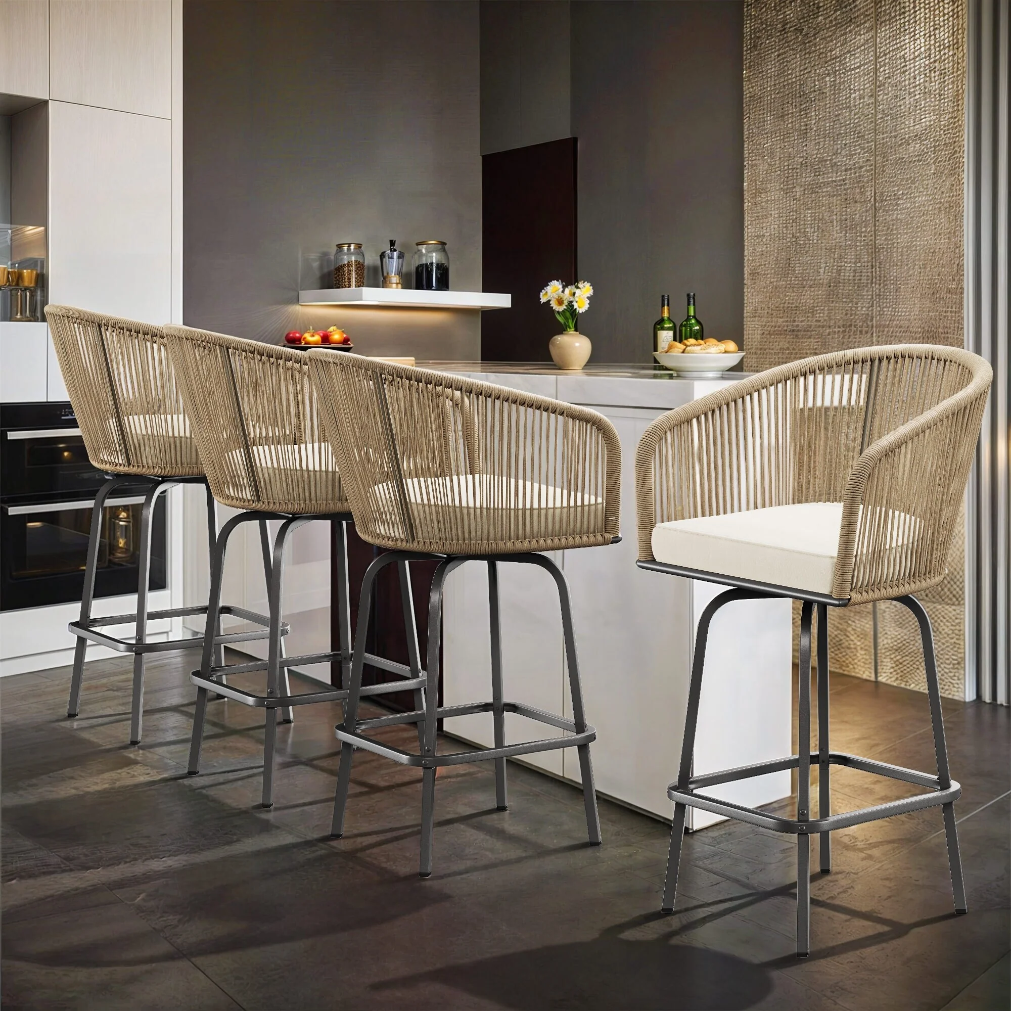 Moasis 4-Piece Patio Woven Swivel Bar Stools