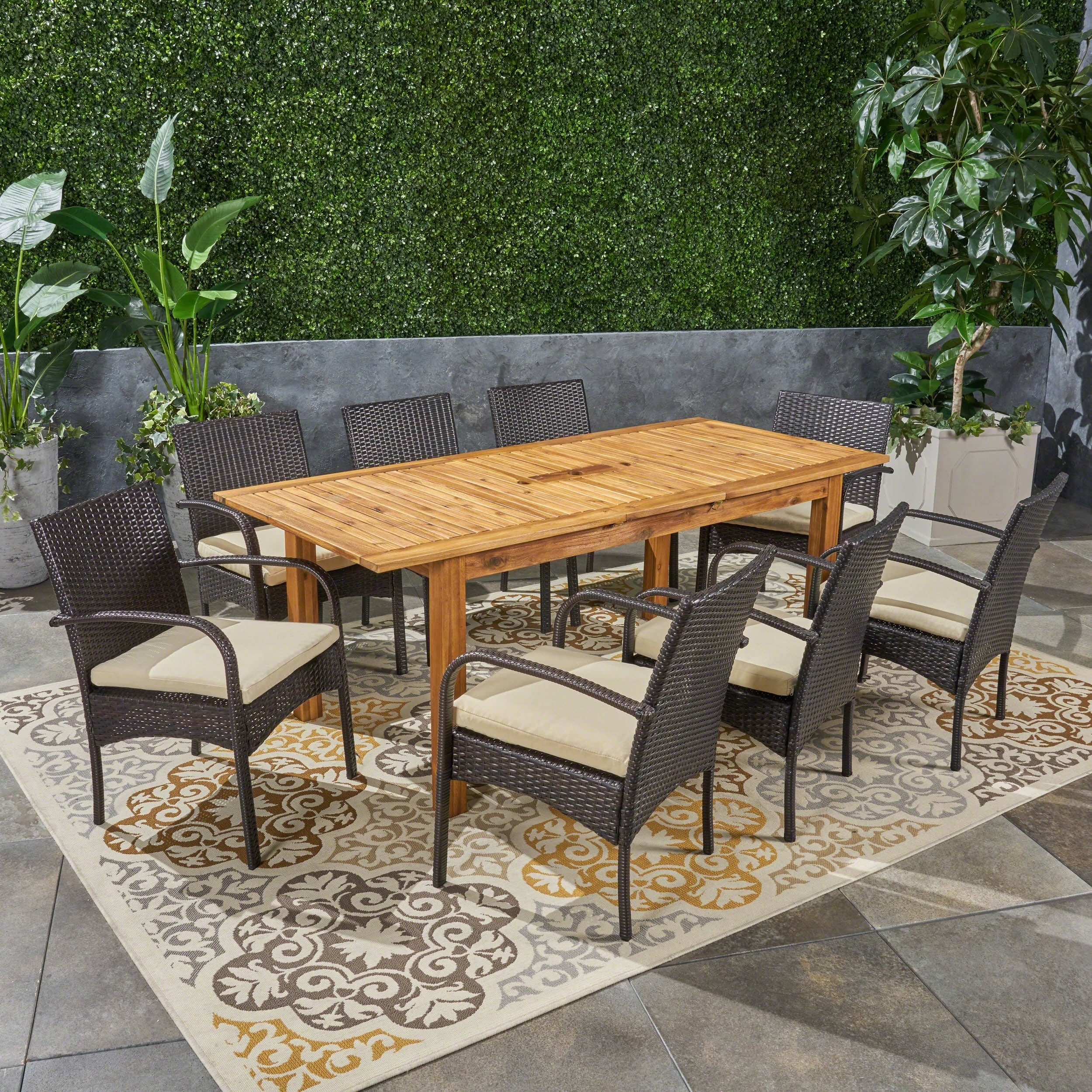 Lacoo PE Wicker/ Acacia Wood Outdoor Patio Dining Set