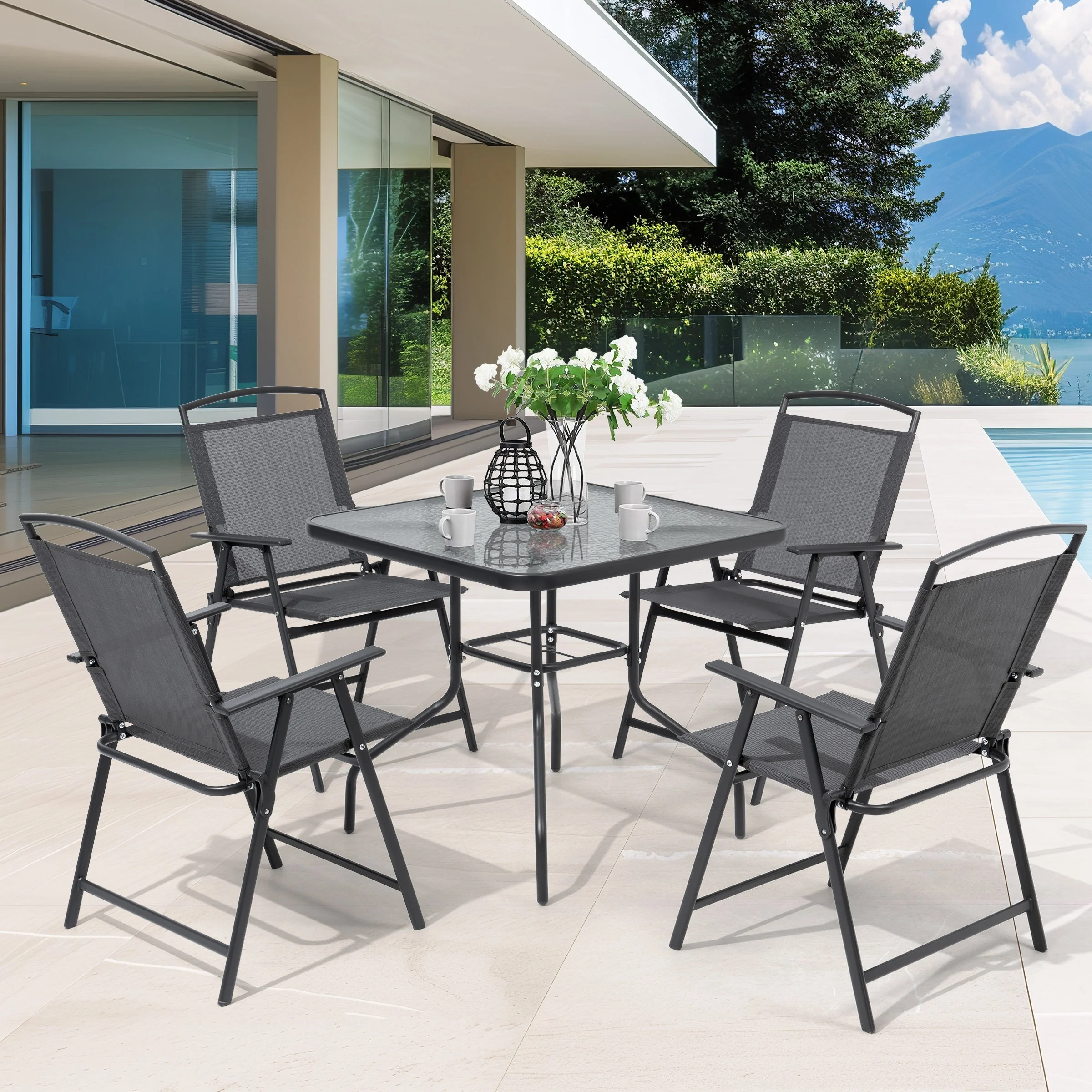 Pellebant Outdoor 5-piece Patio Dining Set with Folding Chairs
