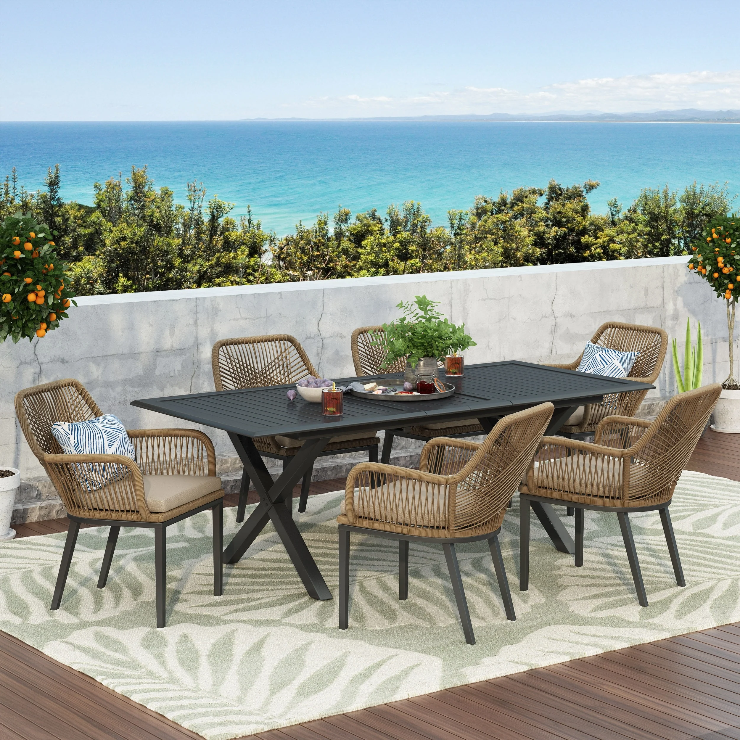 Corvus Martinka Aluminum 7-piece Wicker Outdoor Patio Dining Set
