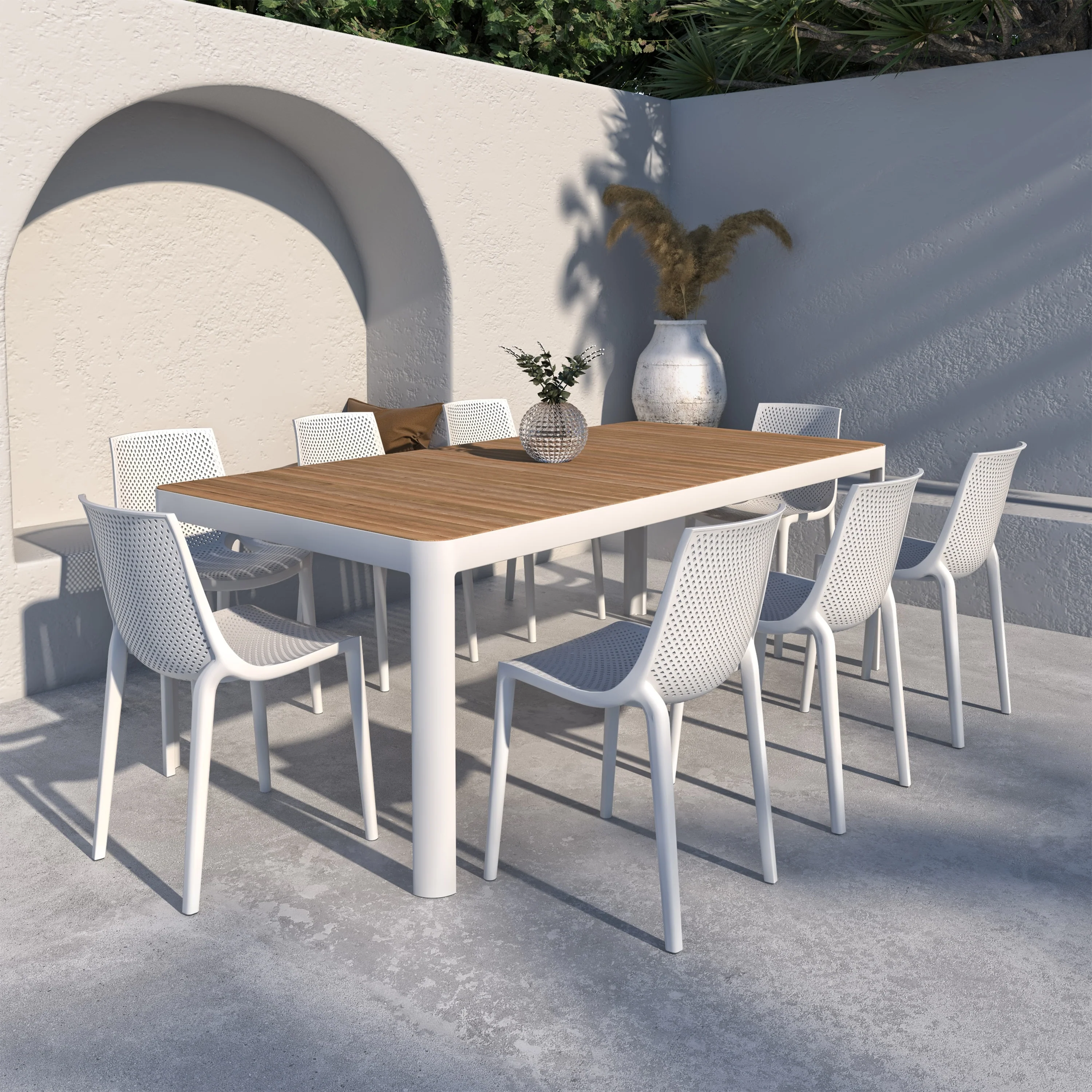 Cordelia 7-Piece Ivory Composite and Eucalyptus Wash Dining Set