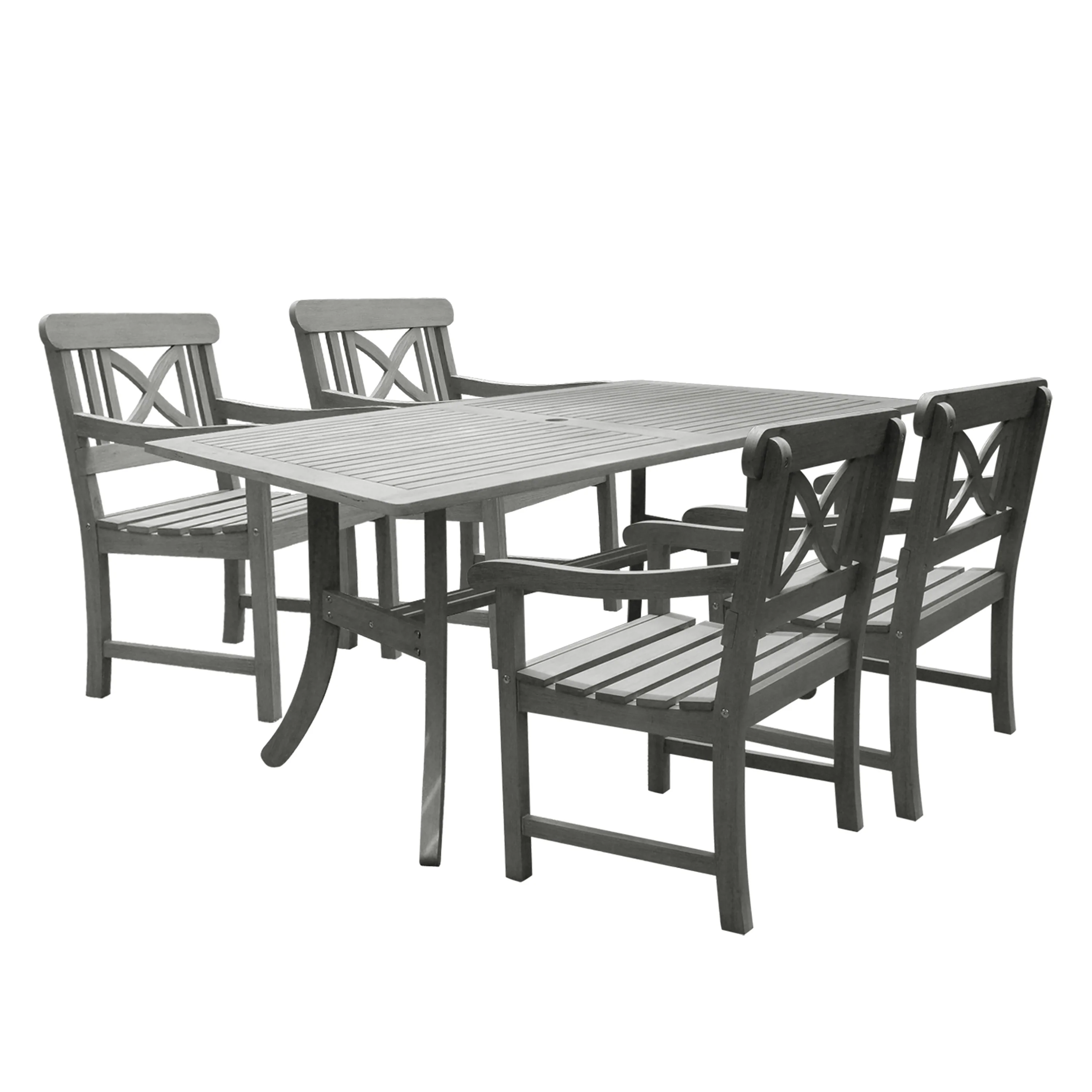 Stefanos 5-Piece Grey-washed Farmhouse Wood Patio Dining Set