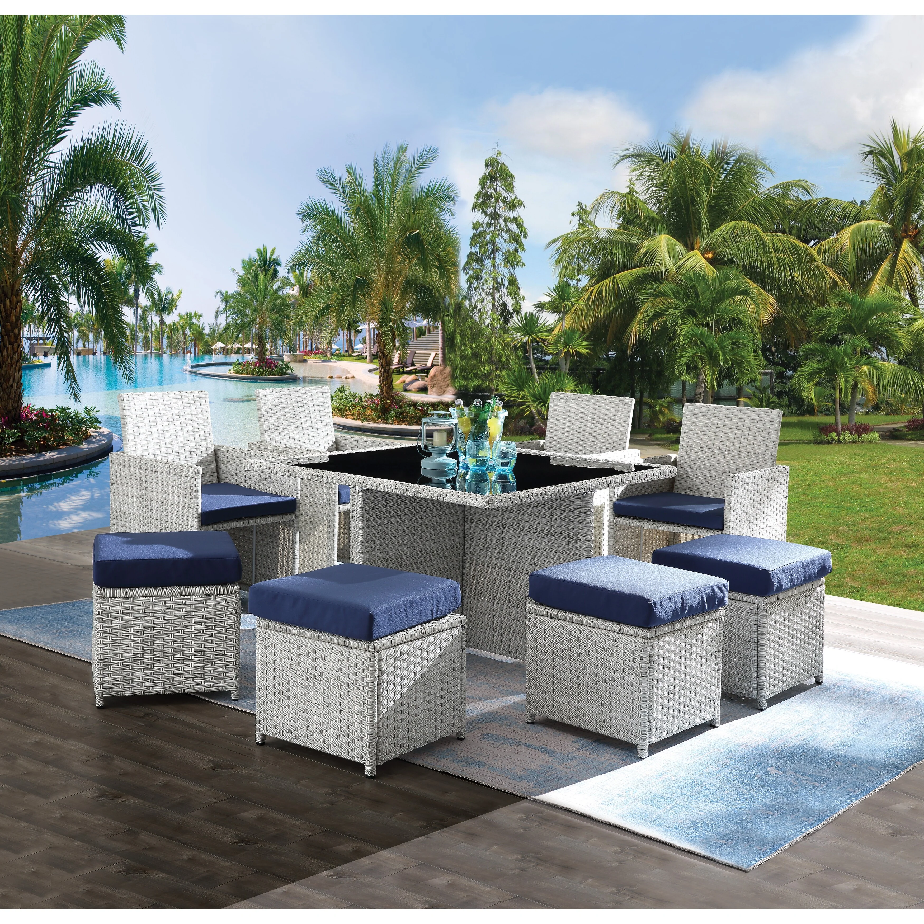 Paitalyi 9PCs Blue Fabric & Wicker Bistro Set