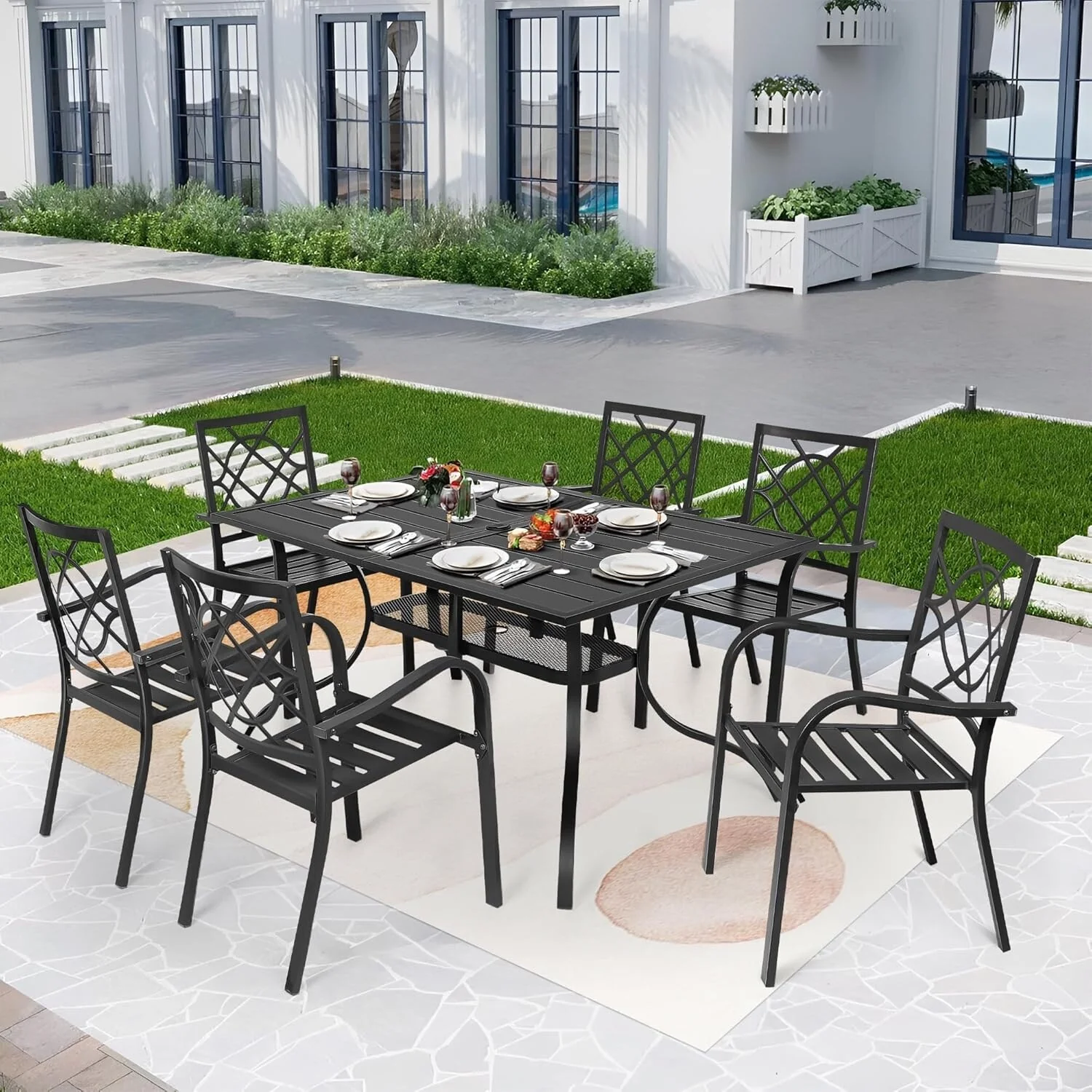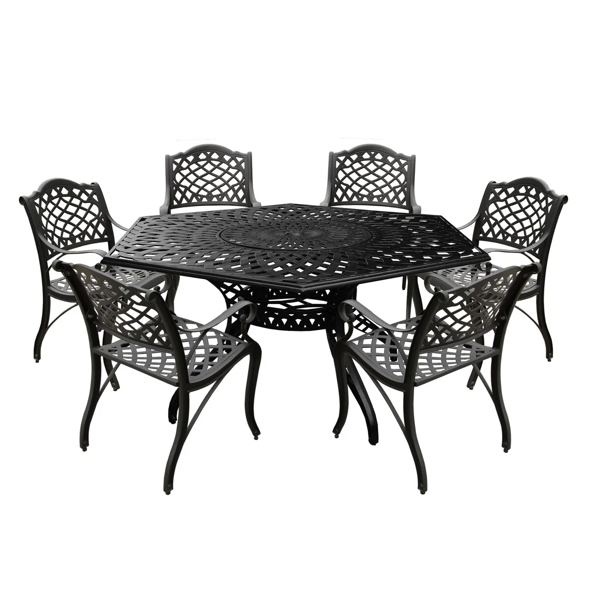 Outdoor 5-Piece Dining Set with Umbrella Hole, Black