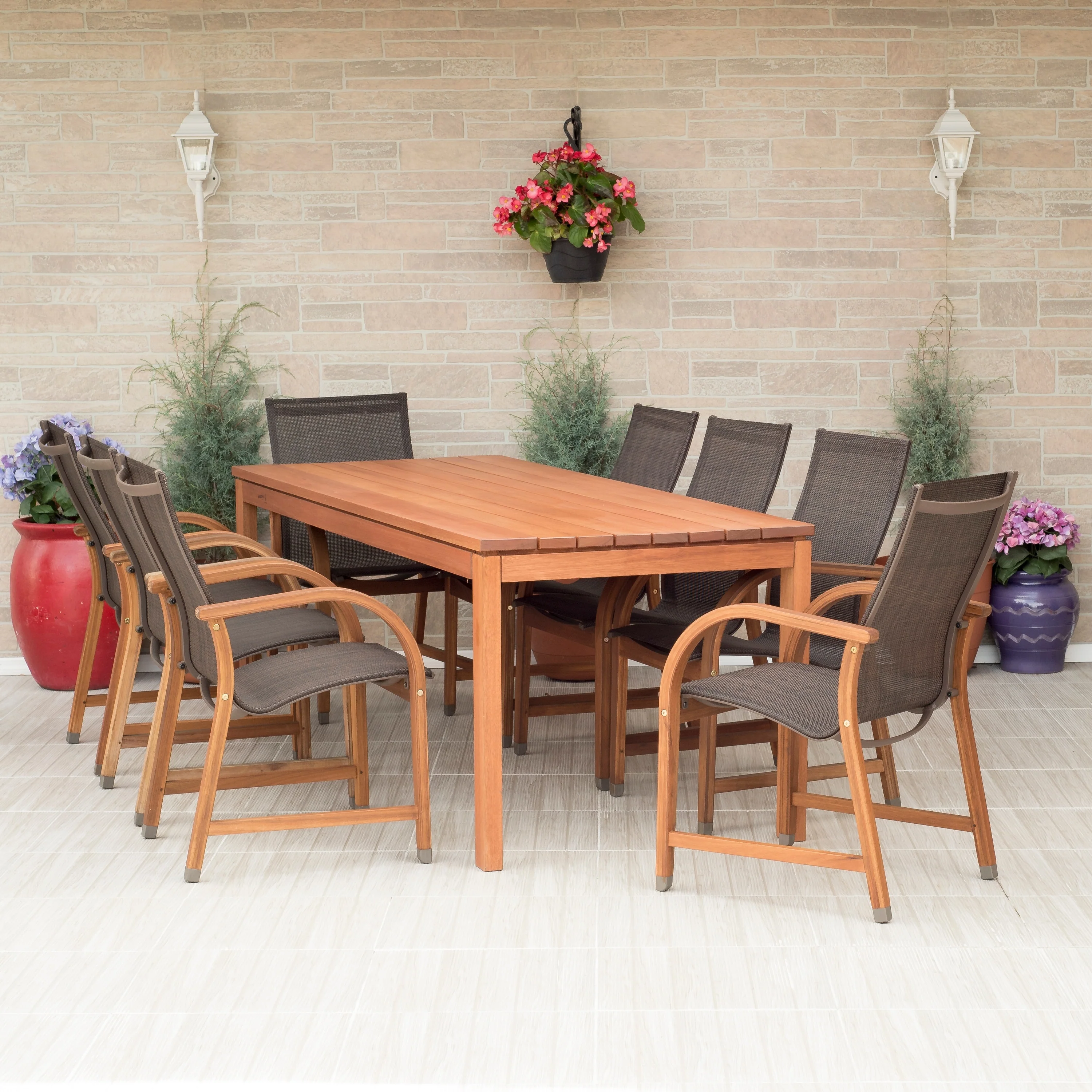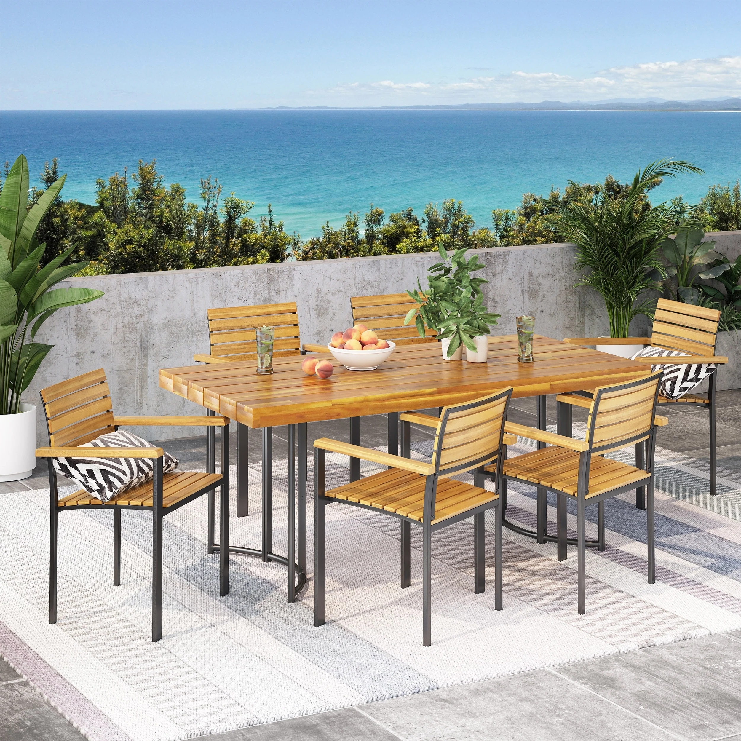 LifestyleGarden 7pc Outdoor Wood Dining Set (Teak Finish) - 7-Piece