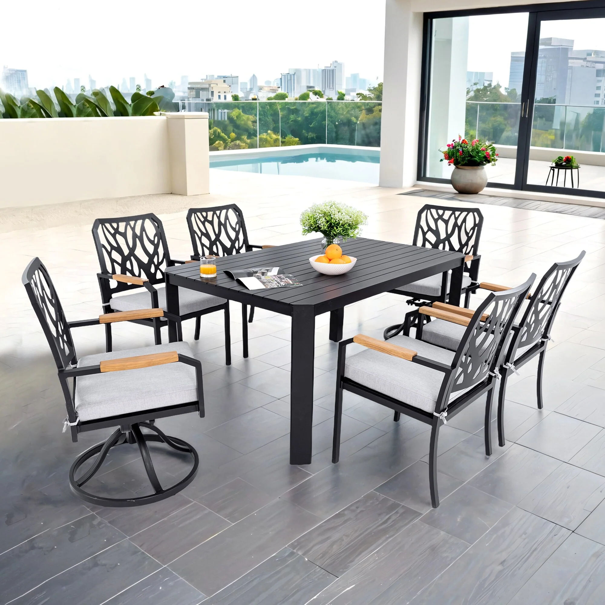 Outdoor 5-Piece Cast Aluminum Dining Set with Cushions