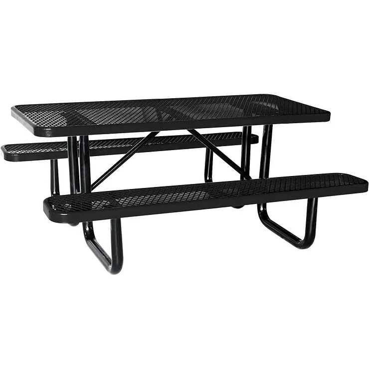 72 Expanded Metal Rectangular Picnic Table, Black With Umbrella Hole