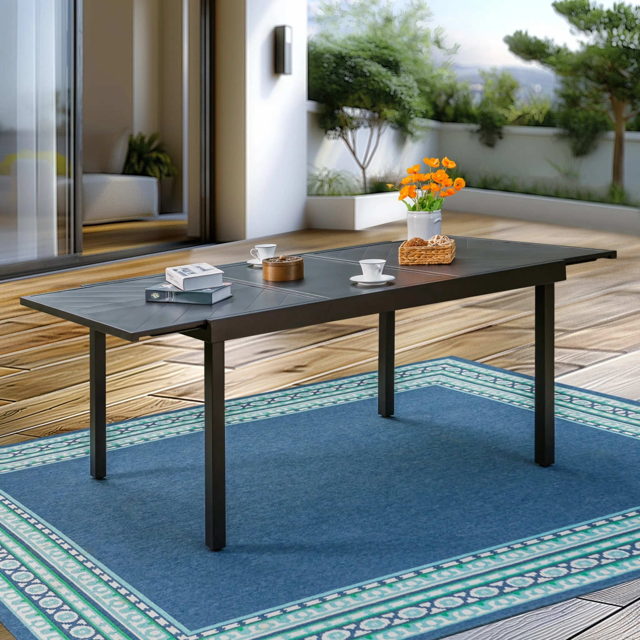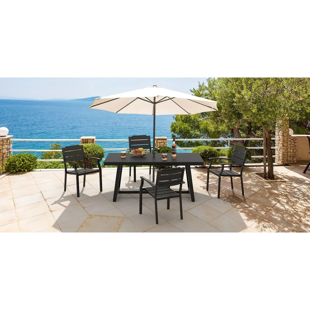 Outdoor Dining Table, Teak Acacia Wood Tabletop and Black Metal Leg
