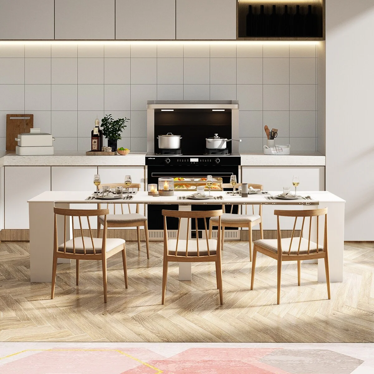 Modern Wooden Rectangular Extendable Dining Table