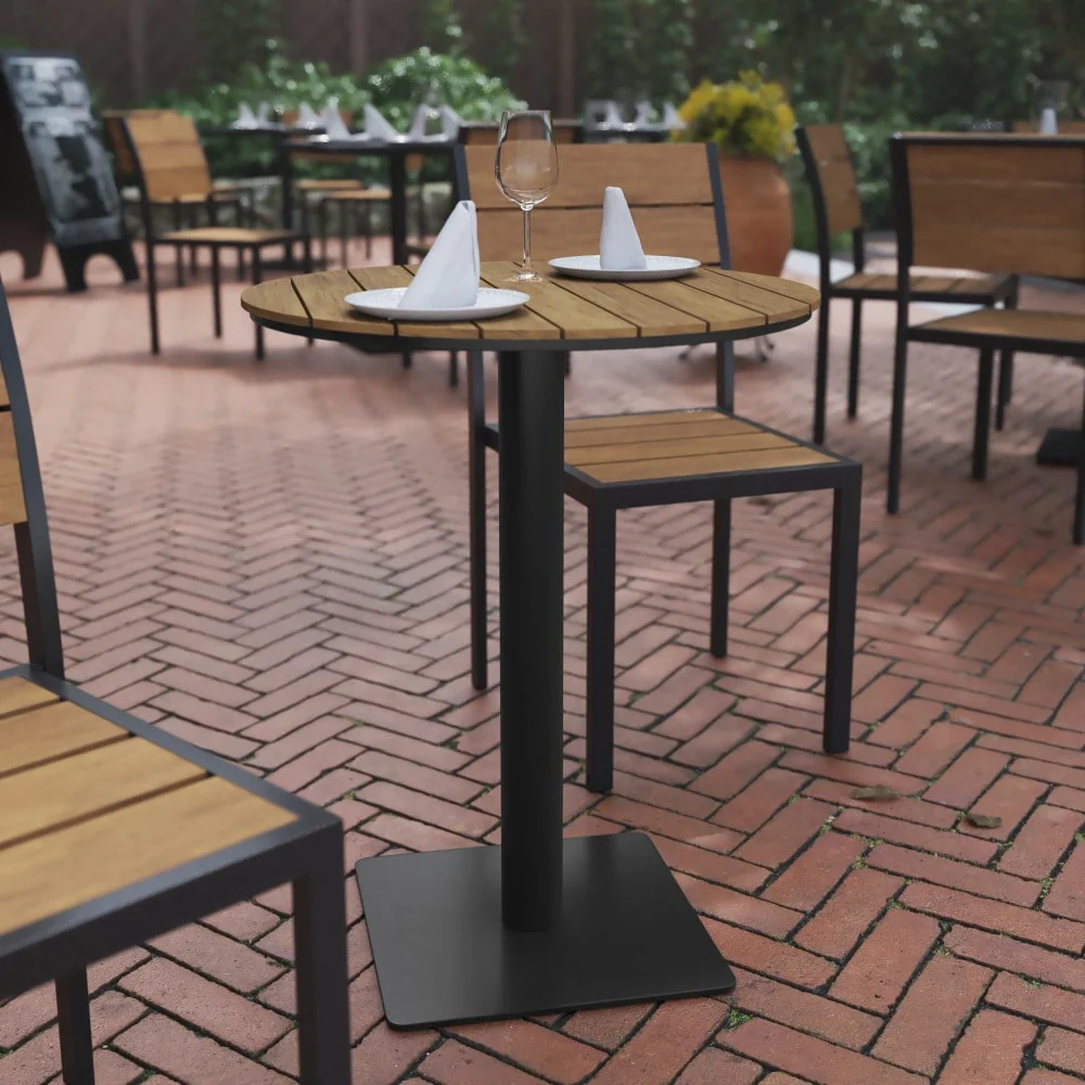 Commercial 24 Inch Round Faux Teak Outdoor Patio Dining Table