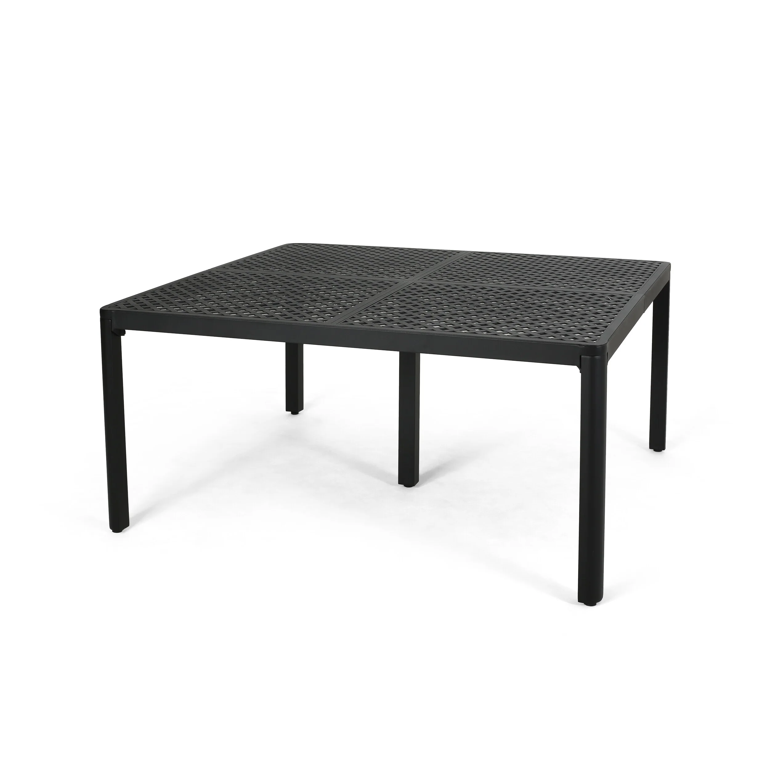Riley Outdoor Dining Table, Square 61 Inch Matte Black Metal Lattice