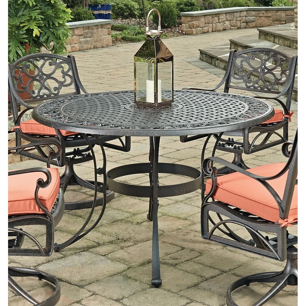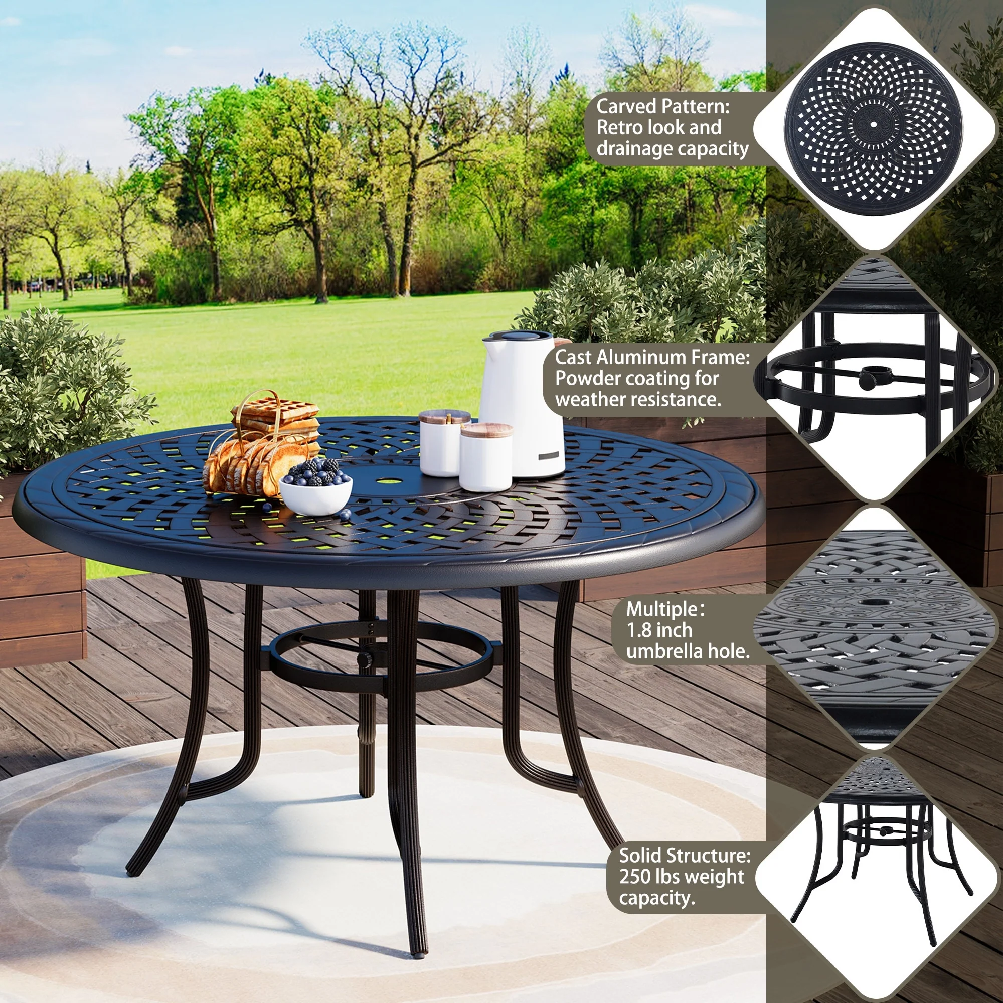 Clihome 51 Patio Round Cast Aluminum Dining Table with Umbrella Hole