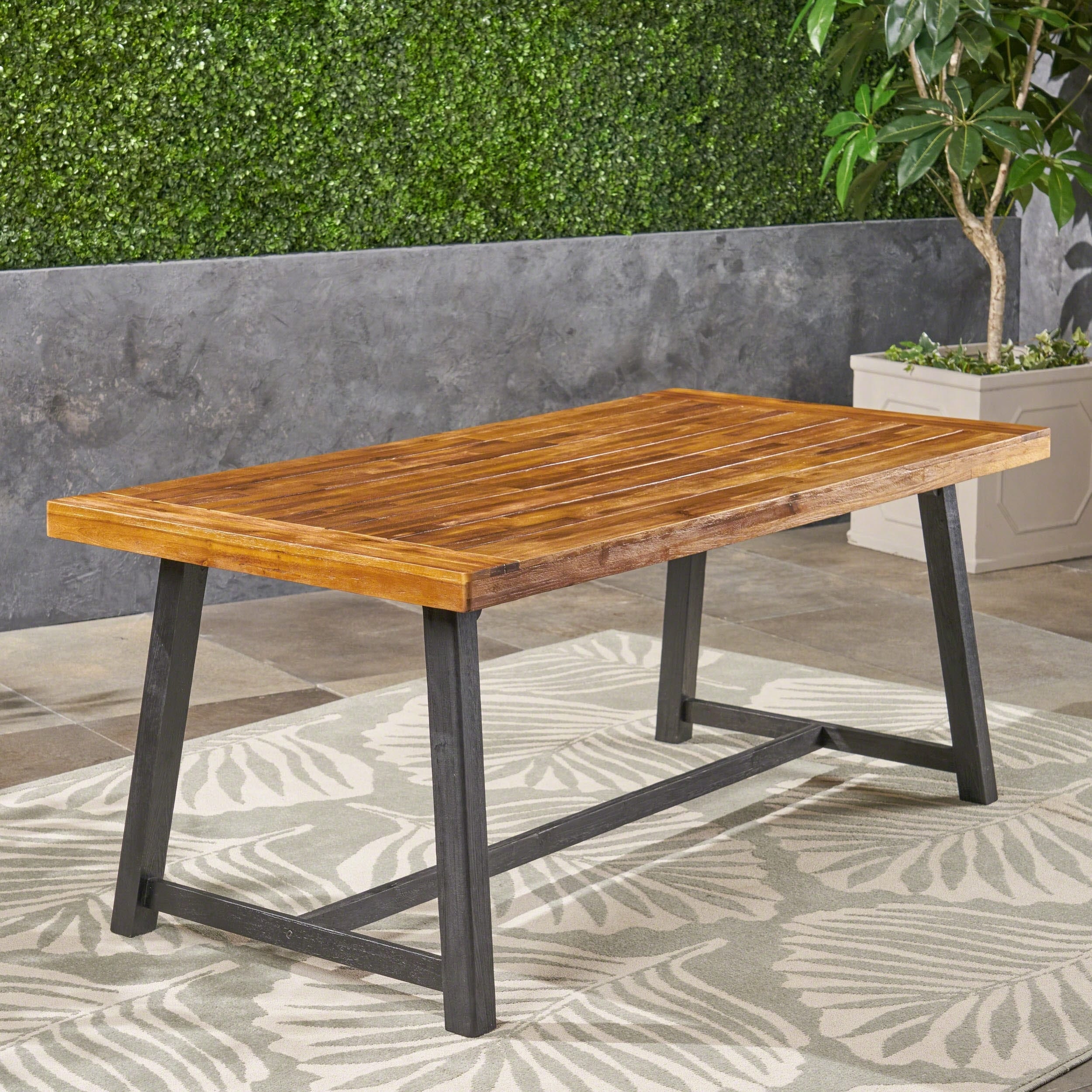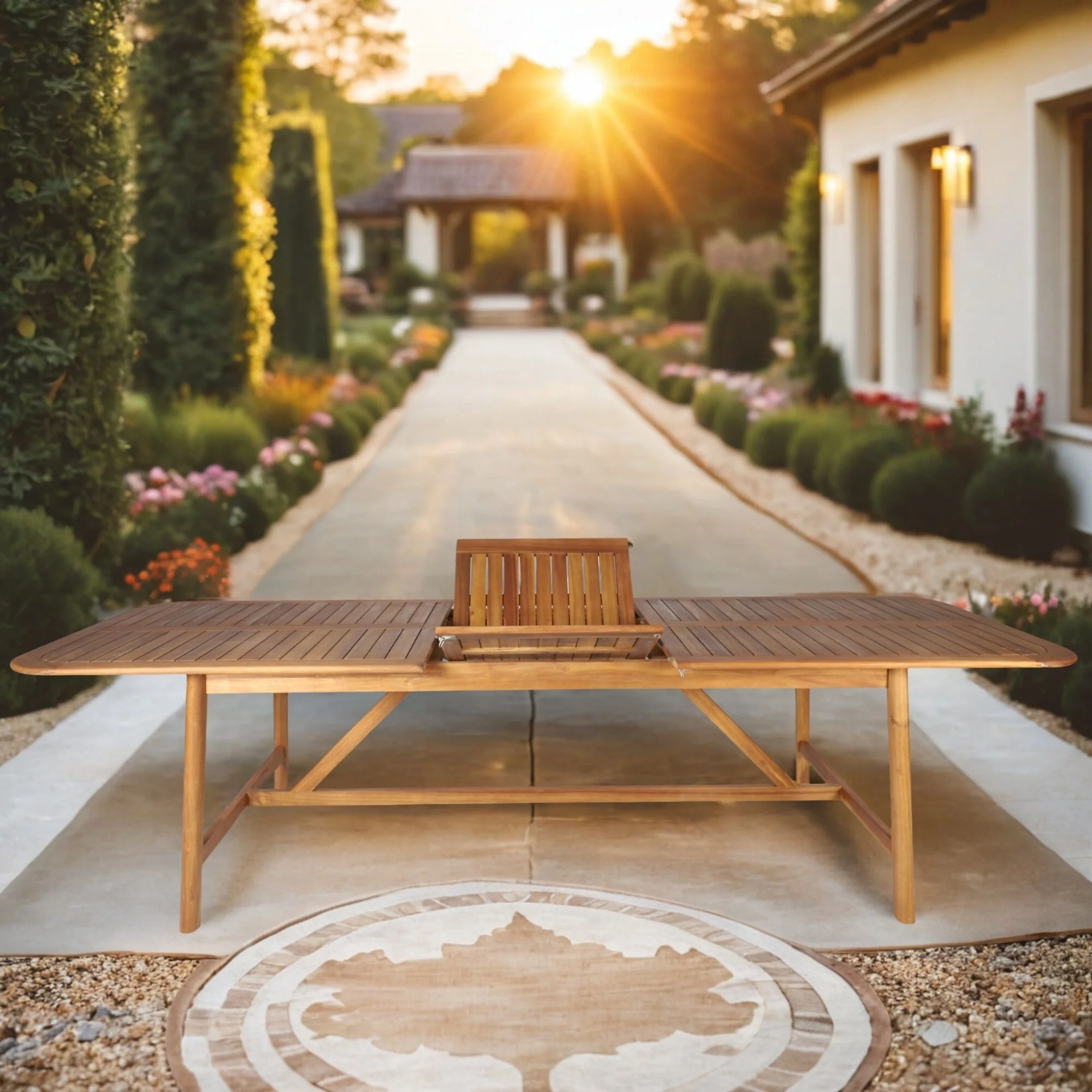Modern Outdoor Acacia Wood Dining Table with Adjustable Length
